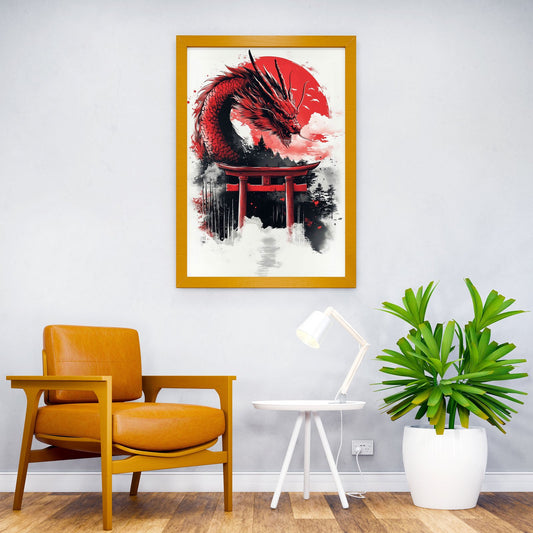 Red Dragon Gate Asian Style Poster | Wall Art for Home & Office | High-Quality Print