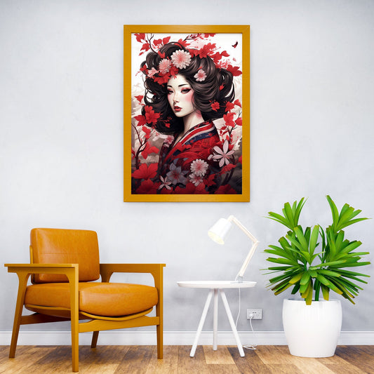 Red Geisha Asian Style Poster | Wall Art for Home & Office | High-Quality Print