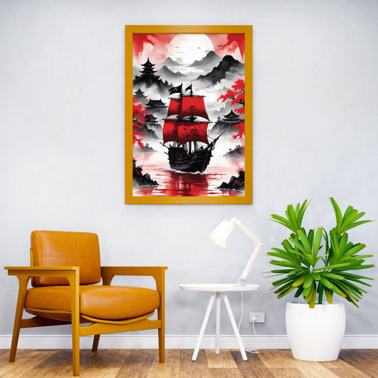 Red Black Pirate ship Asian Style Poster | Wall Art for Home & Office | High-Quality Print