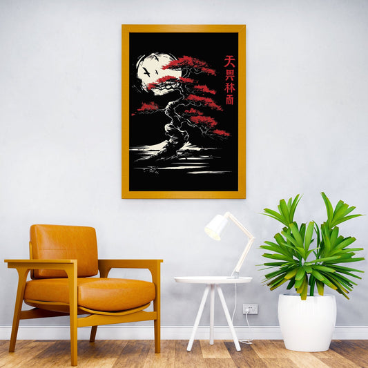 Red Bonsai Asian Style Poster | Wall Art for Home & Office | High-Quality Print