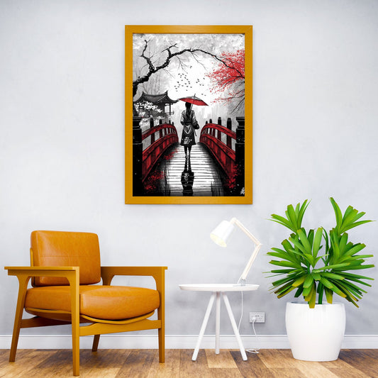 Red Bridge Girl Asian Style Poster | Wall Art for Home & Office | High-Quality Print