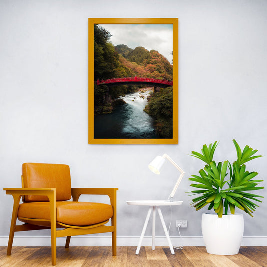 Red Bridge Over River Asian Style Poster | Wall Art for Home & Office | High-Quality Print