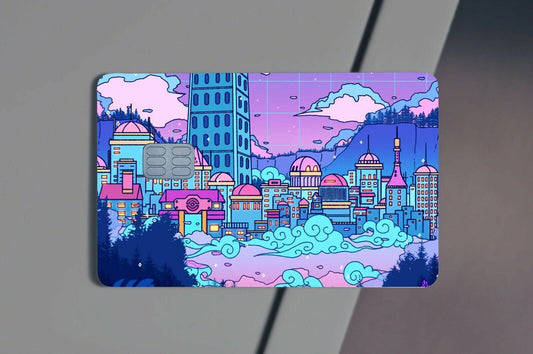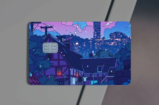 Cyberpunk Village Anime Credit Card Skin