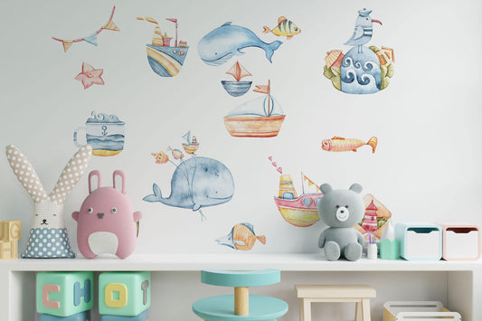 Waterland Dolphine Wall decal for kids / ocean / sea / fish / underwater set / hand painted / watercolor