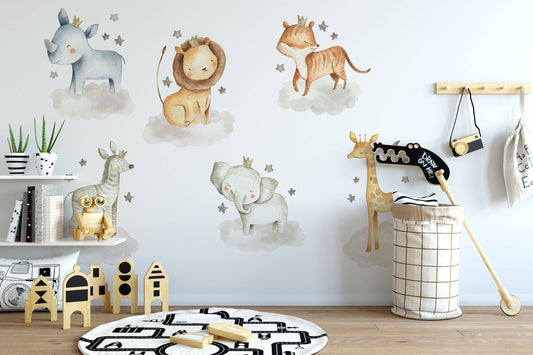 Air Balloon Nursery wall decal Watercolor animal, Forest animals Wall art, Nursery wall stickers Girls sticker Kids room decor