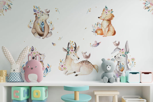 Forest Animals Nursery Wall Decal Sticker, Woodland Animals Wall Art, Watercolor Wall decal for kids