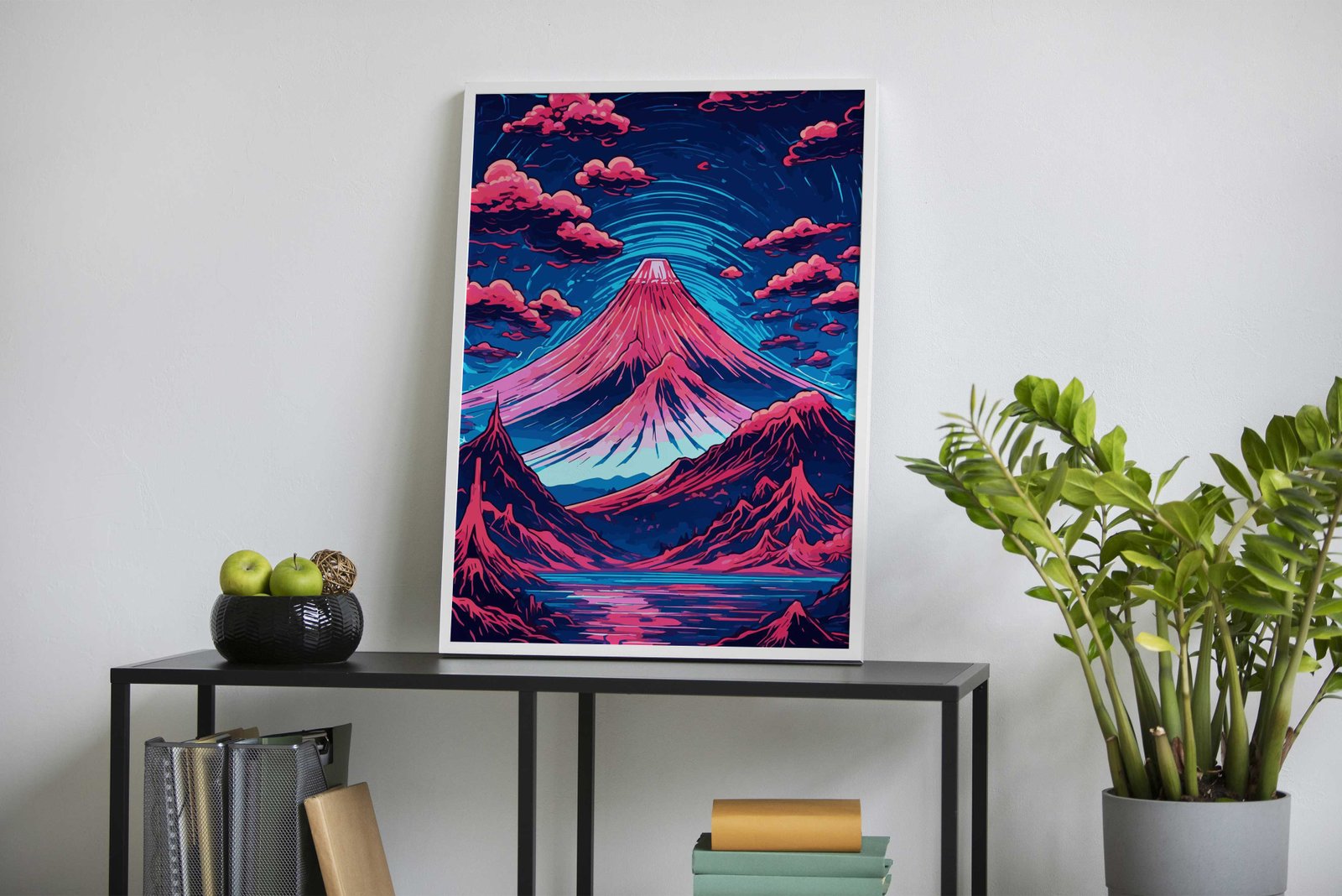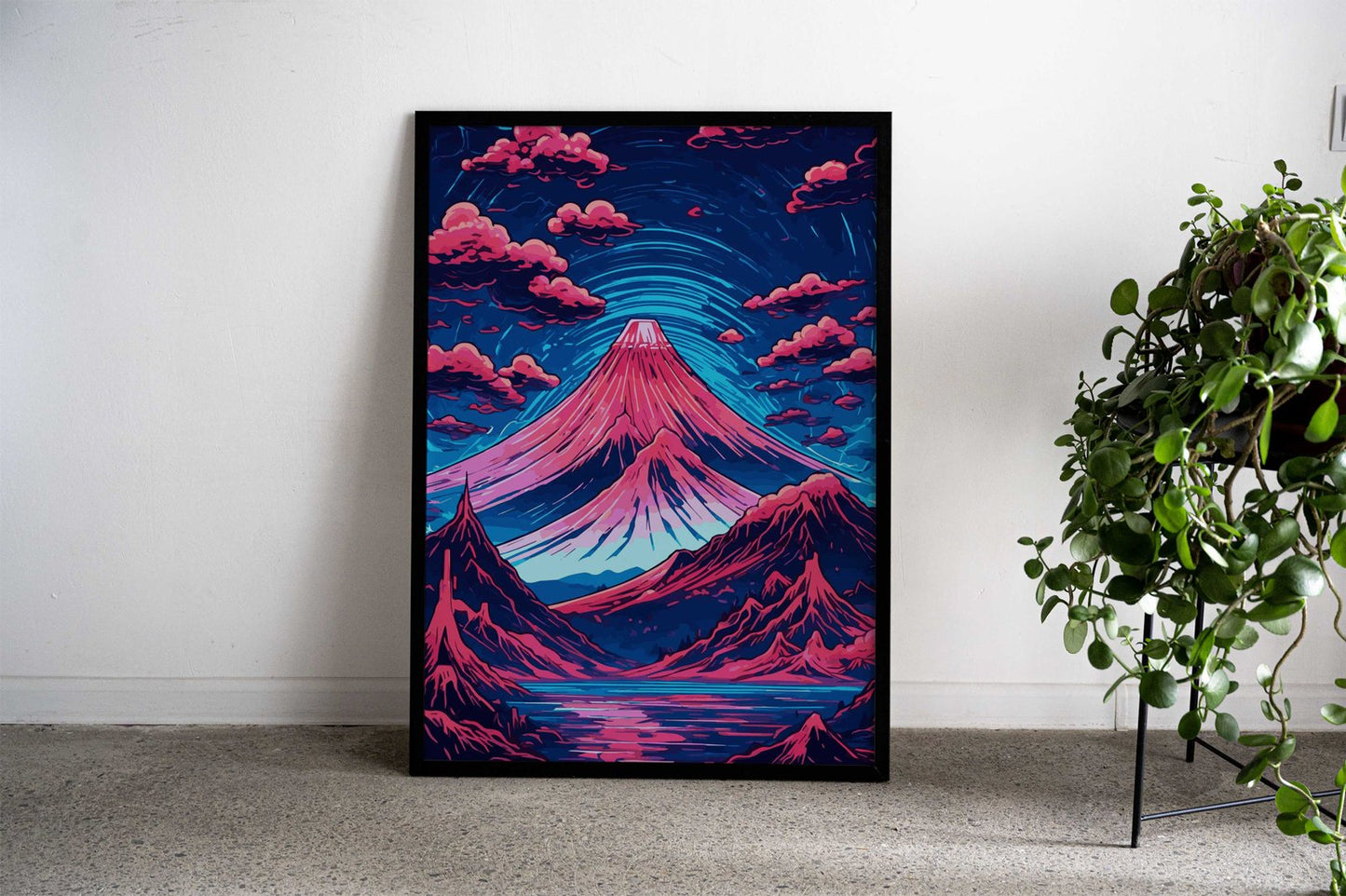 Abstract Neon Mount Fuji 7 Asian Style Poster | Wall Art for Home & Office | High-Quality Print