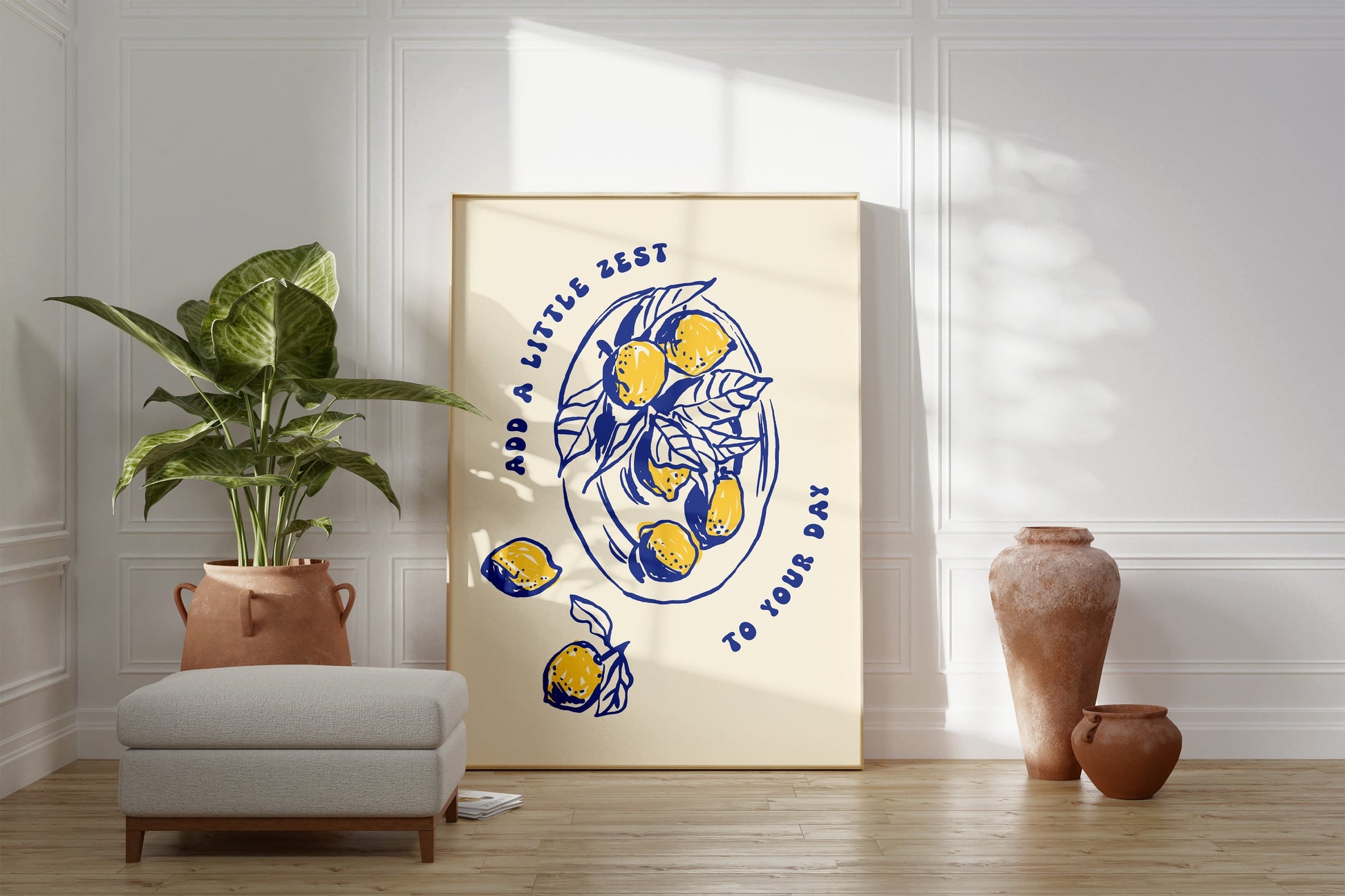 Bring a burst of summer to your kitchen with our Lemon Kitchen Fruit illustration Print! This vibrant and cheerful print features realistic watercolor-style lemons, adding a fresh and lively touch to any space. Its minimalistic design effortlessly complements any décor, making it a perfect addition to both modern and traditional kitchens.