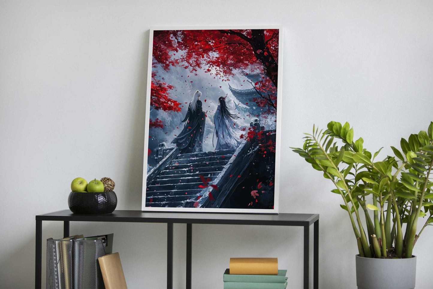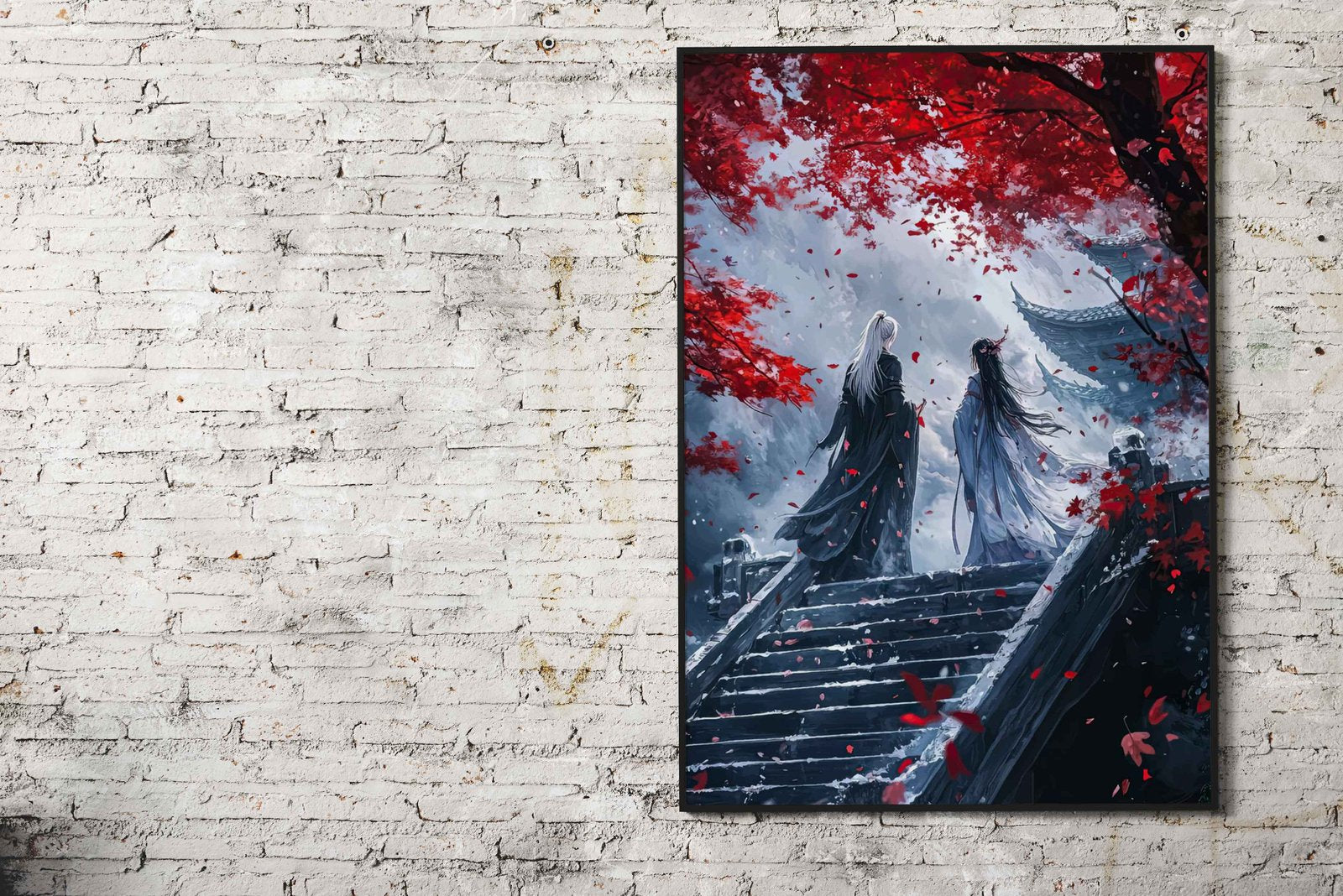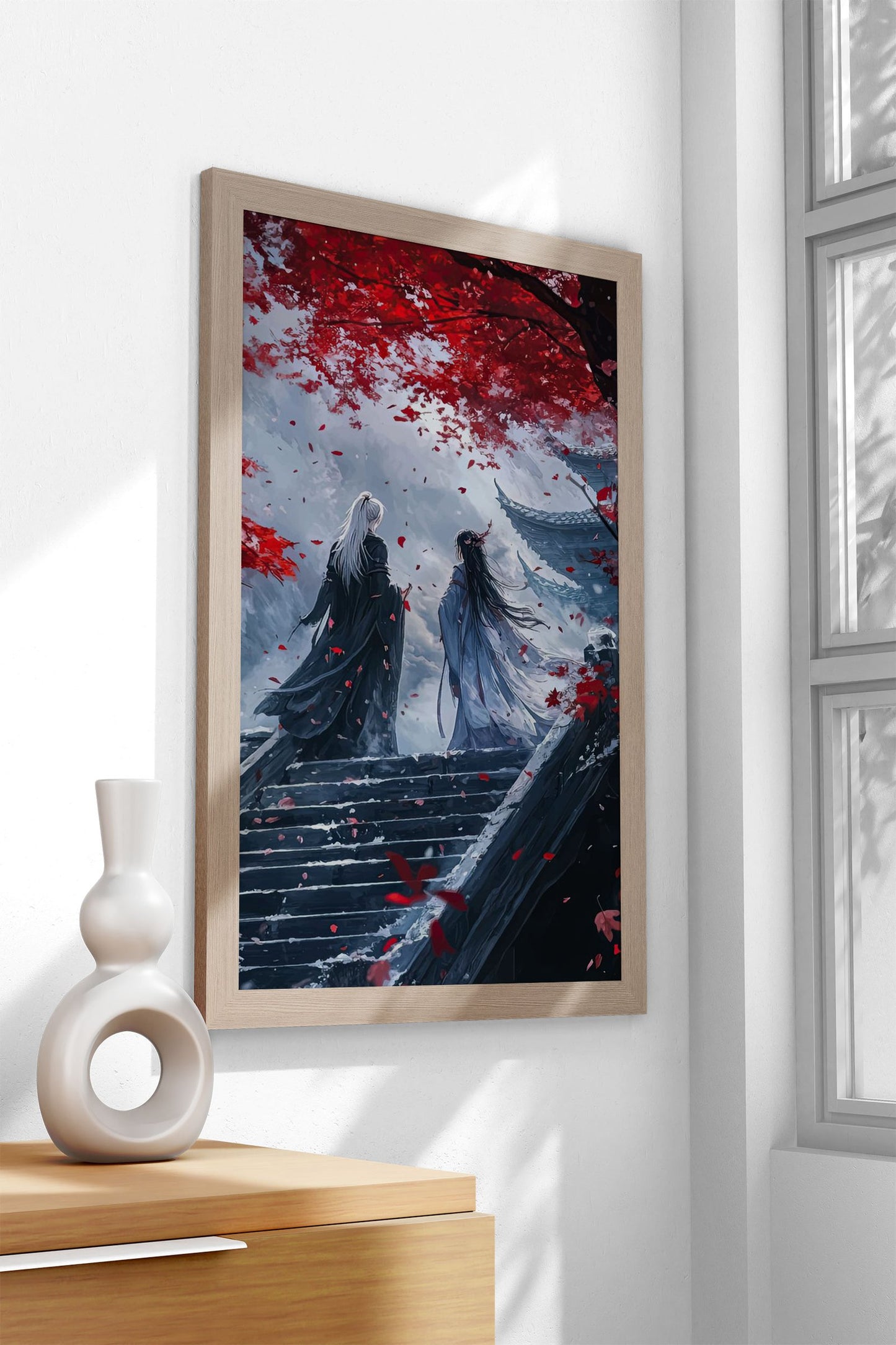Anime Couple in Red Autumn Asian Style Poster | Wall Art for Home & Office | High-Quality Print