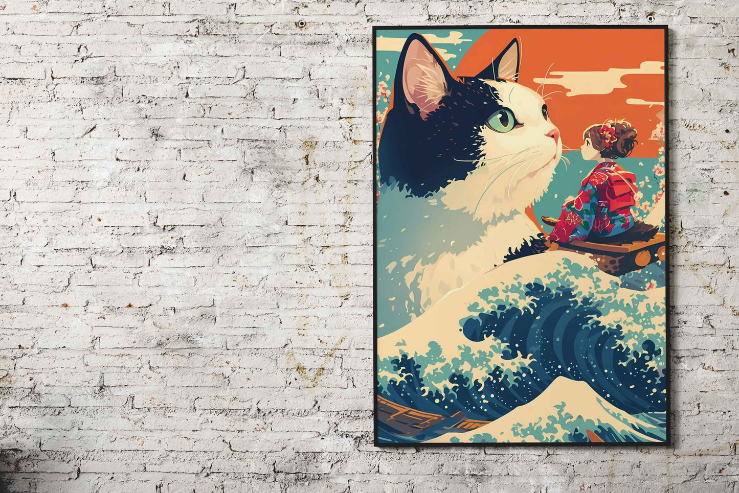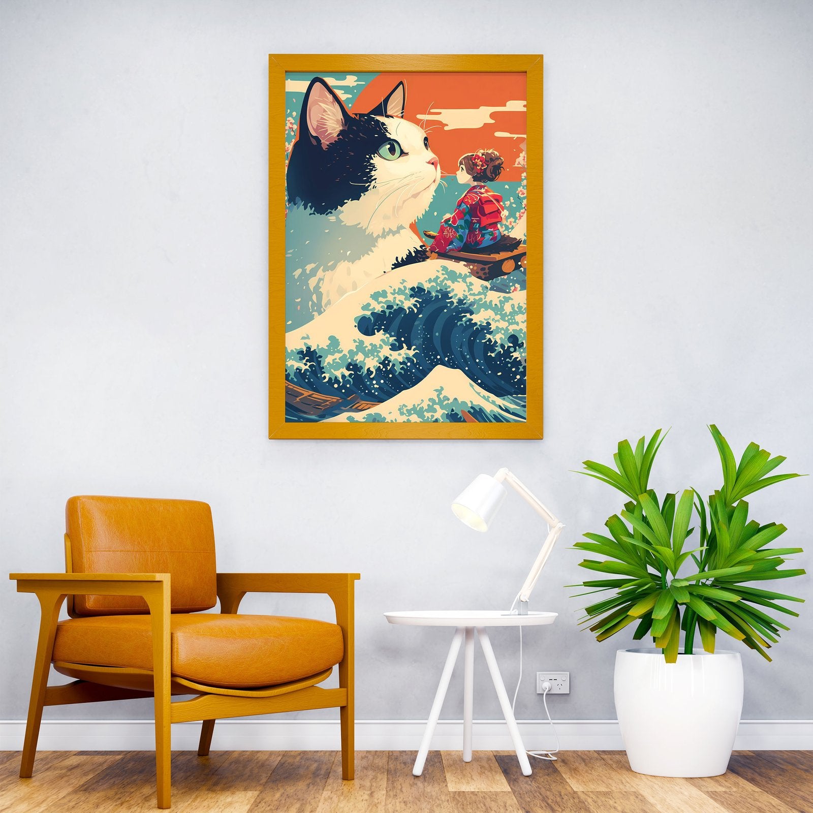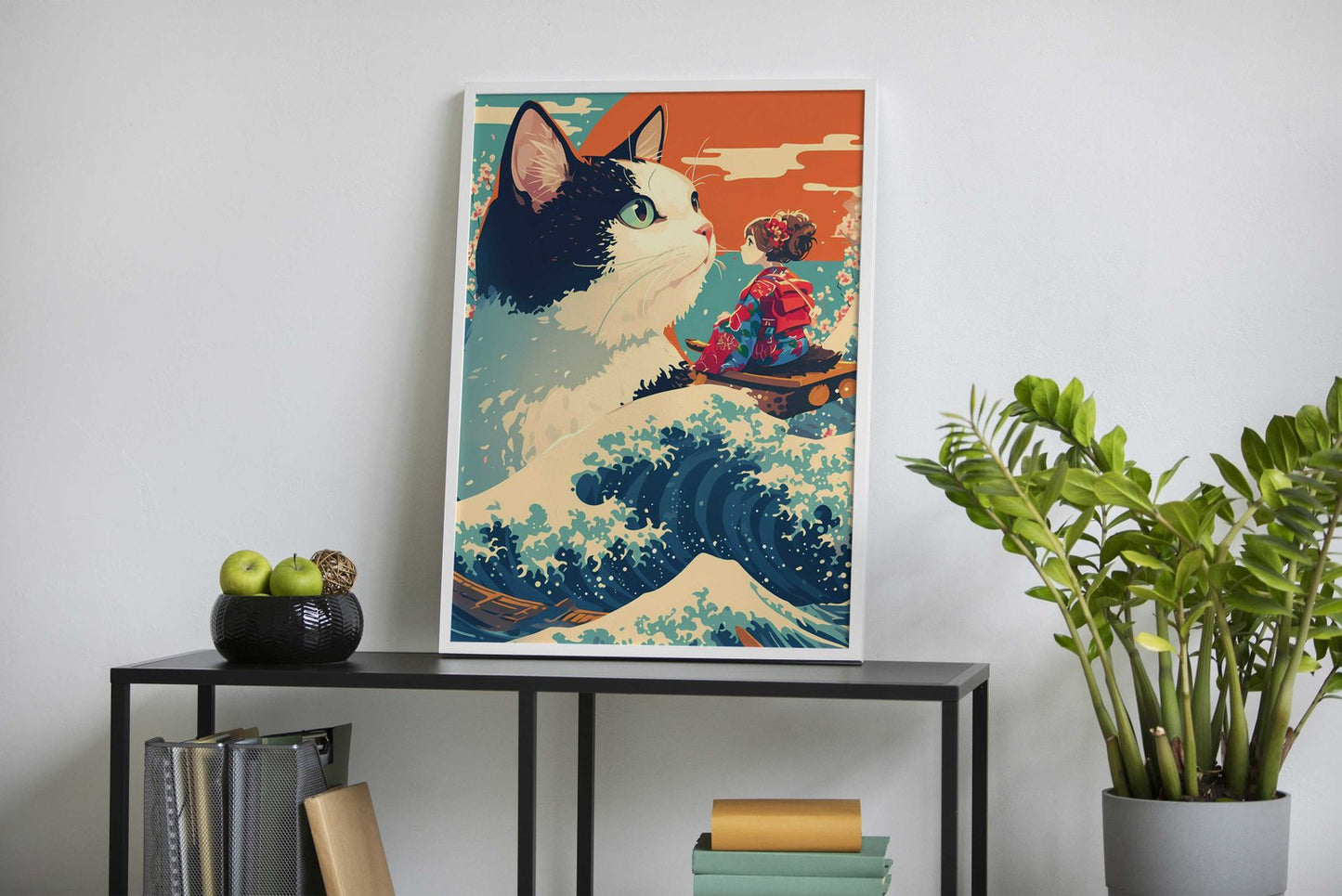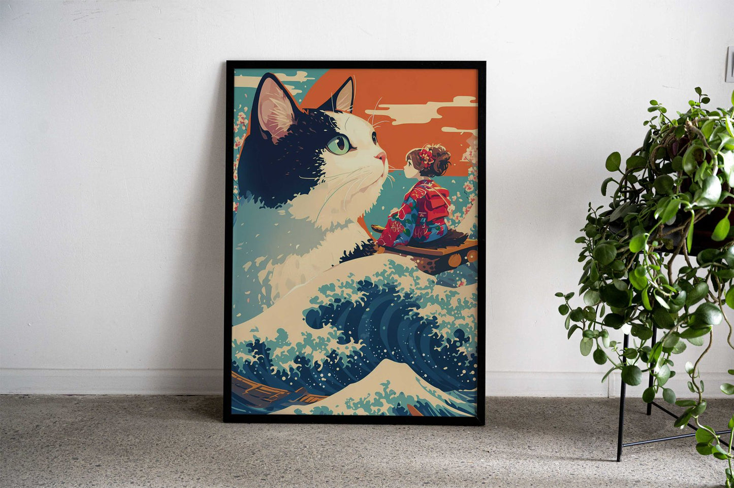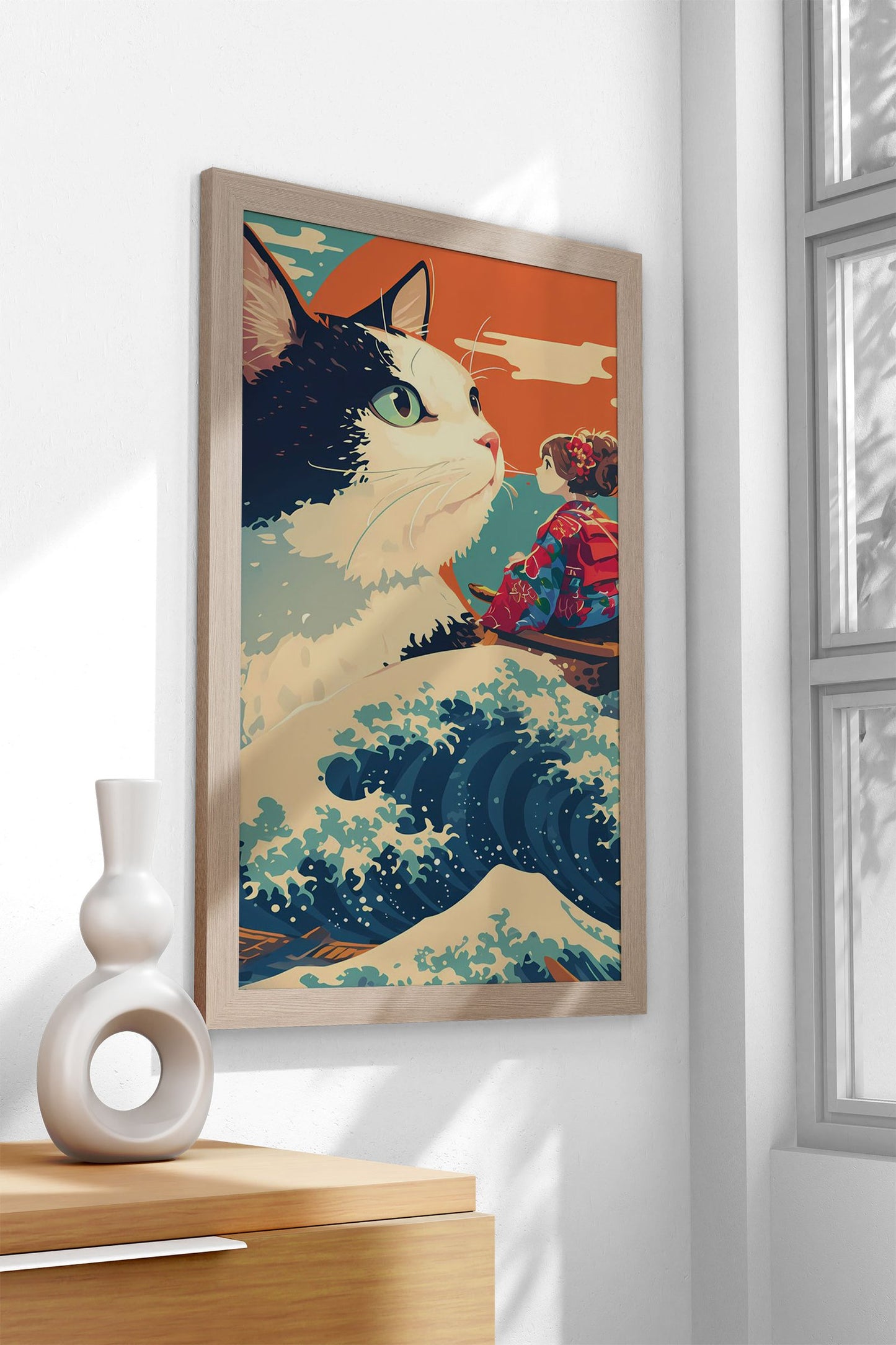 Anime Girl And The Sea Cat Asian Style Poster | Wall Art for Home & Office | High-Quality Print