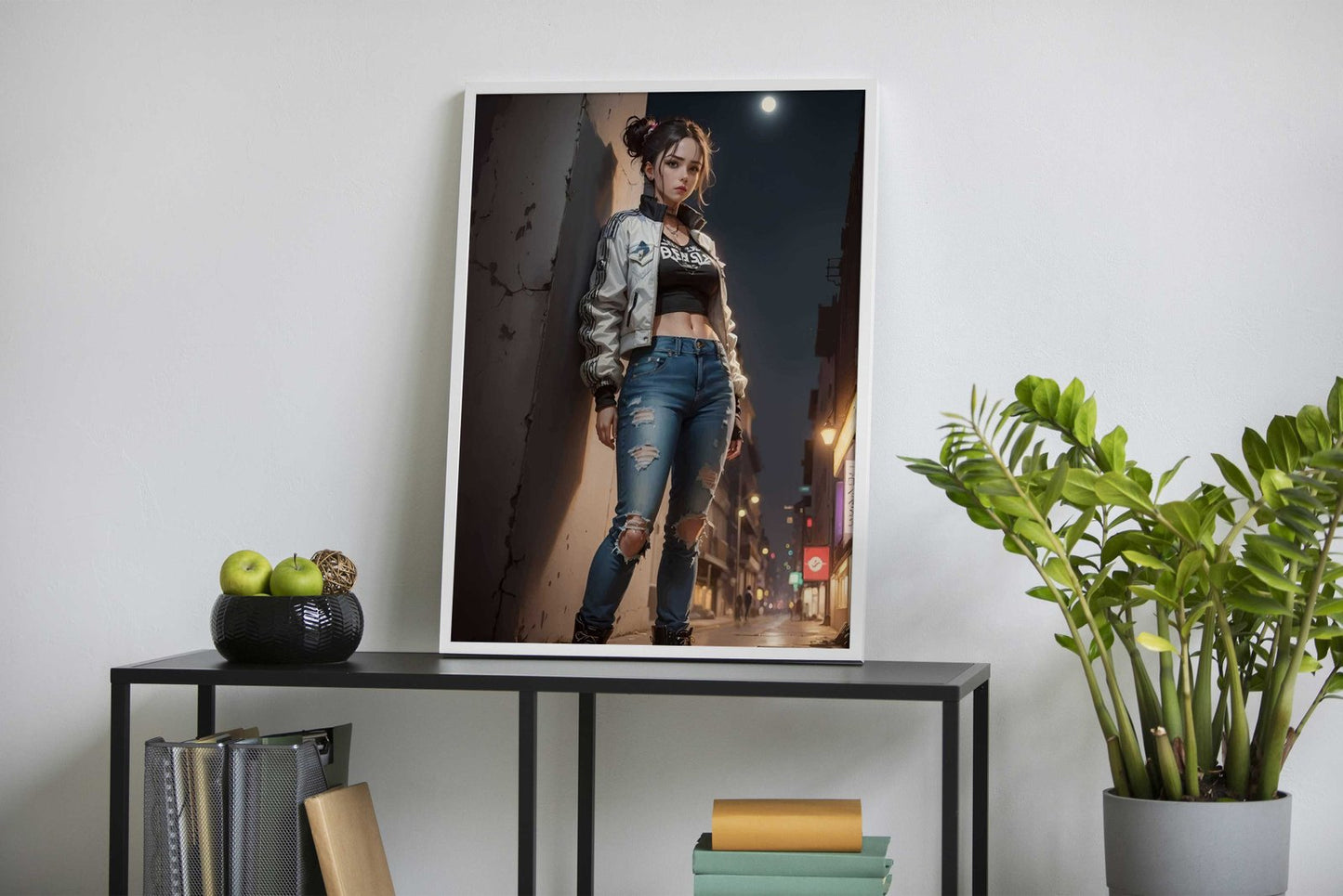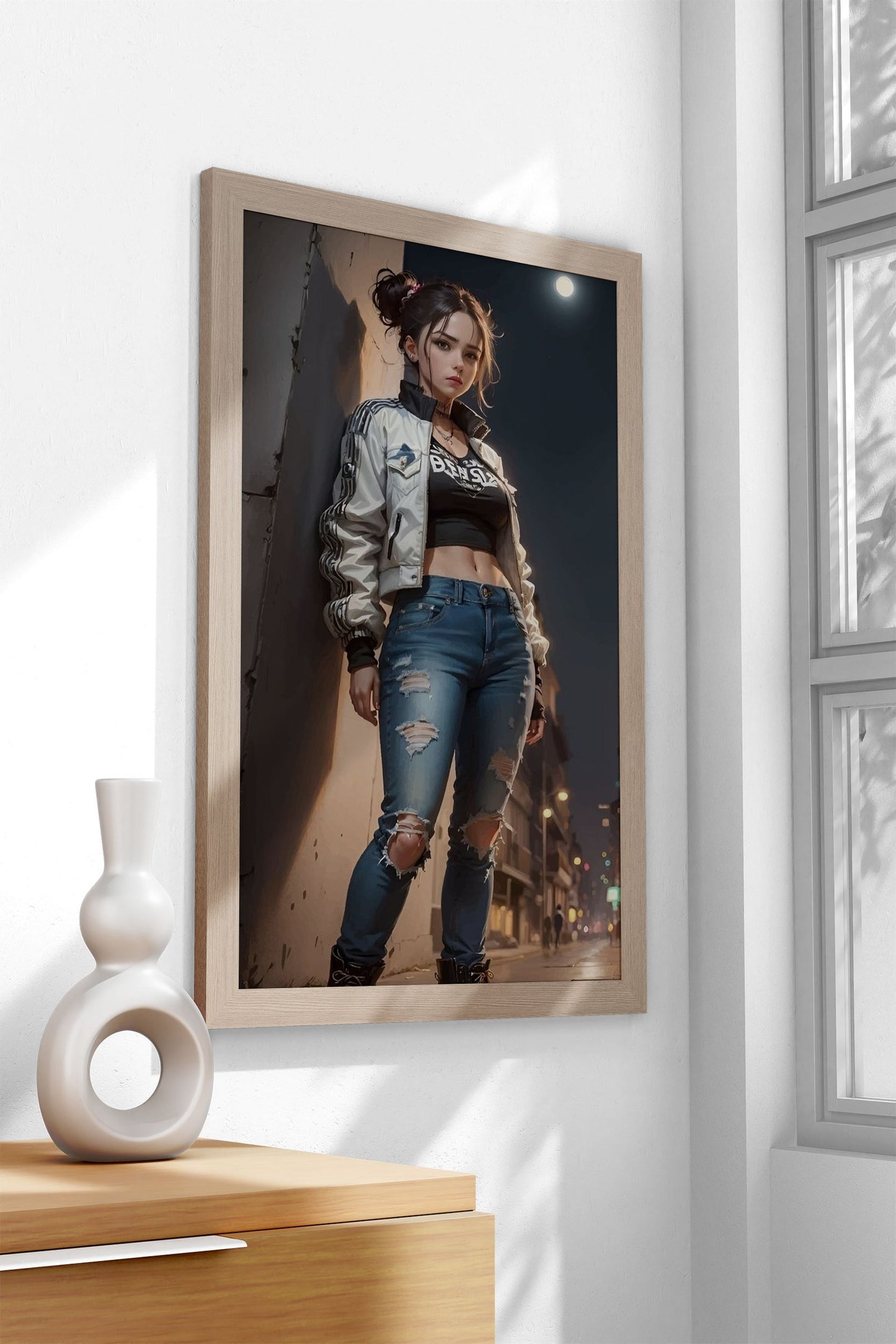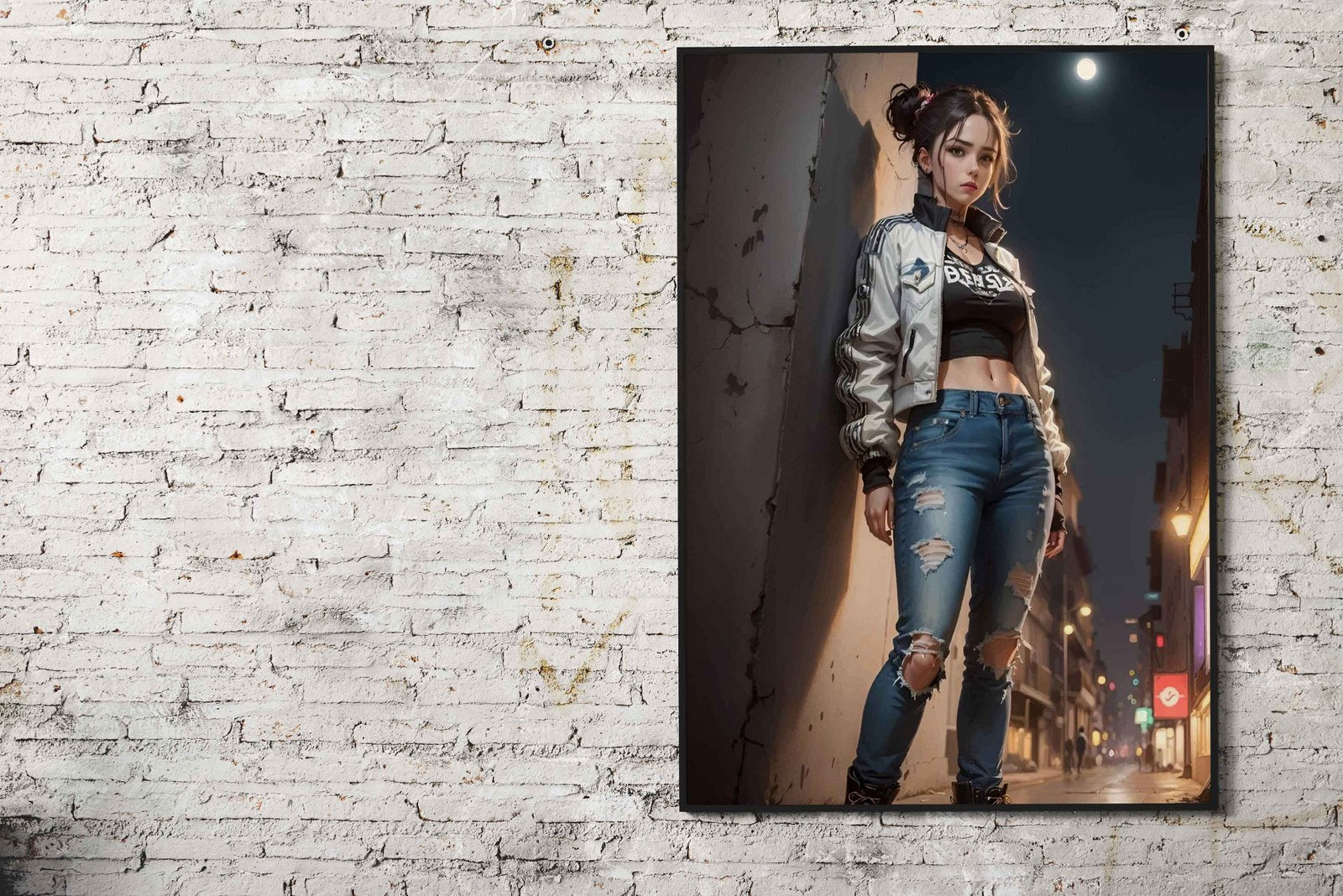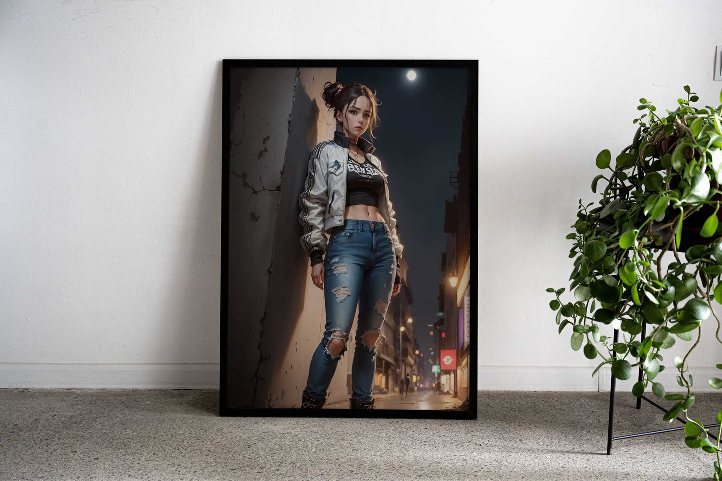 Anime Girl in City Night Asian Style Poster | Wall Art for Home & Office | High-Quality Print