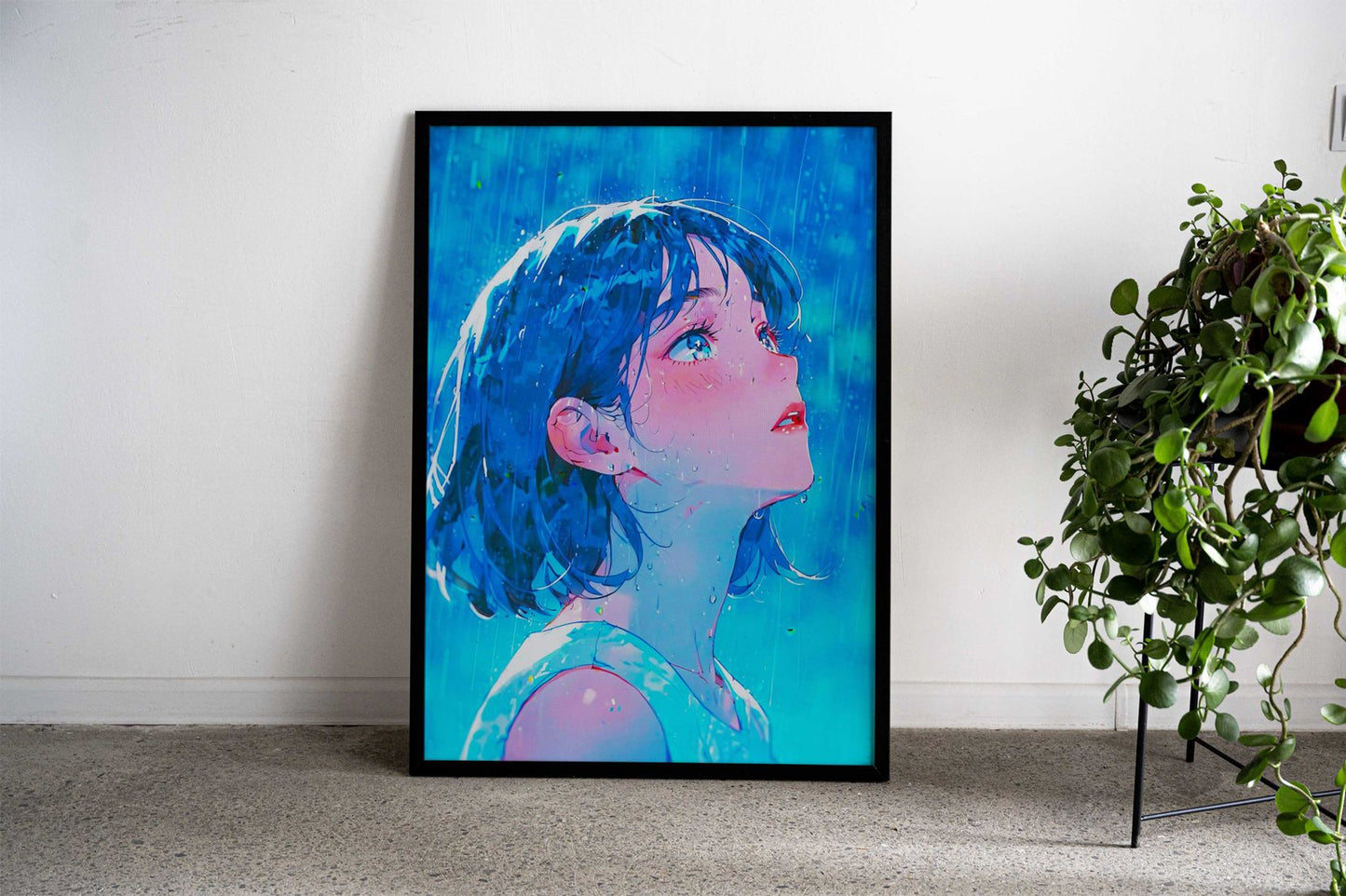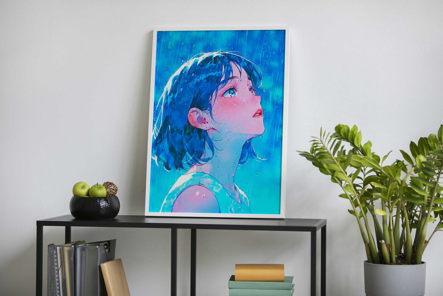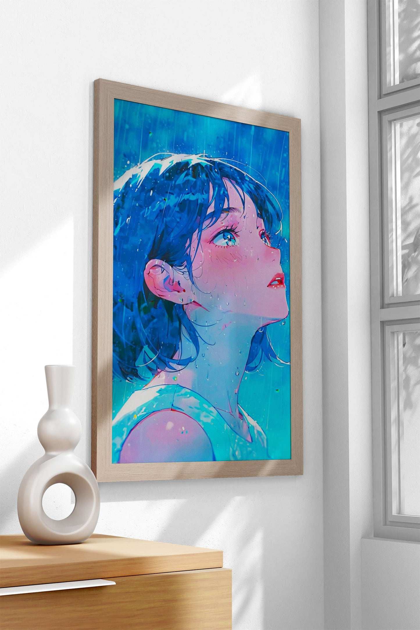 Anime Girl in Rain Asian Style Poster | Wall Art for Home & Office | High-Quality Print