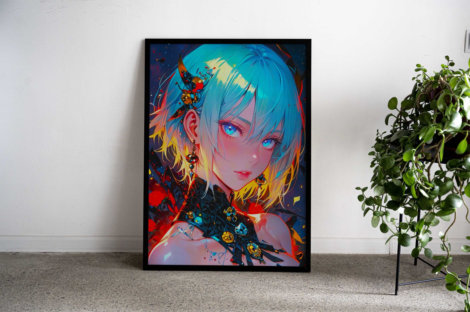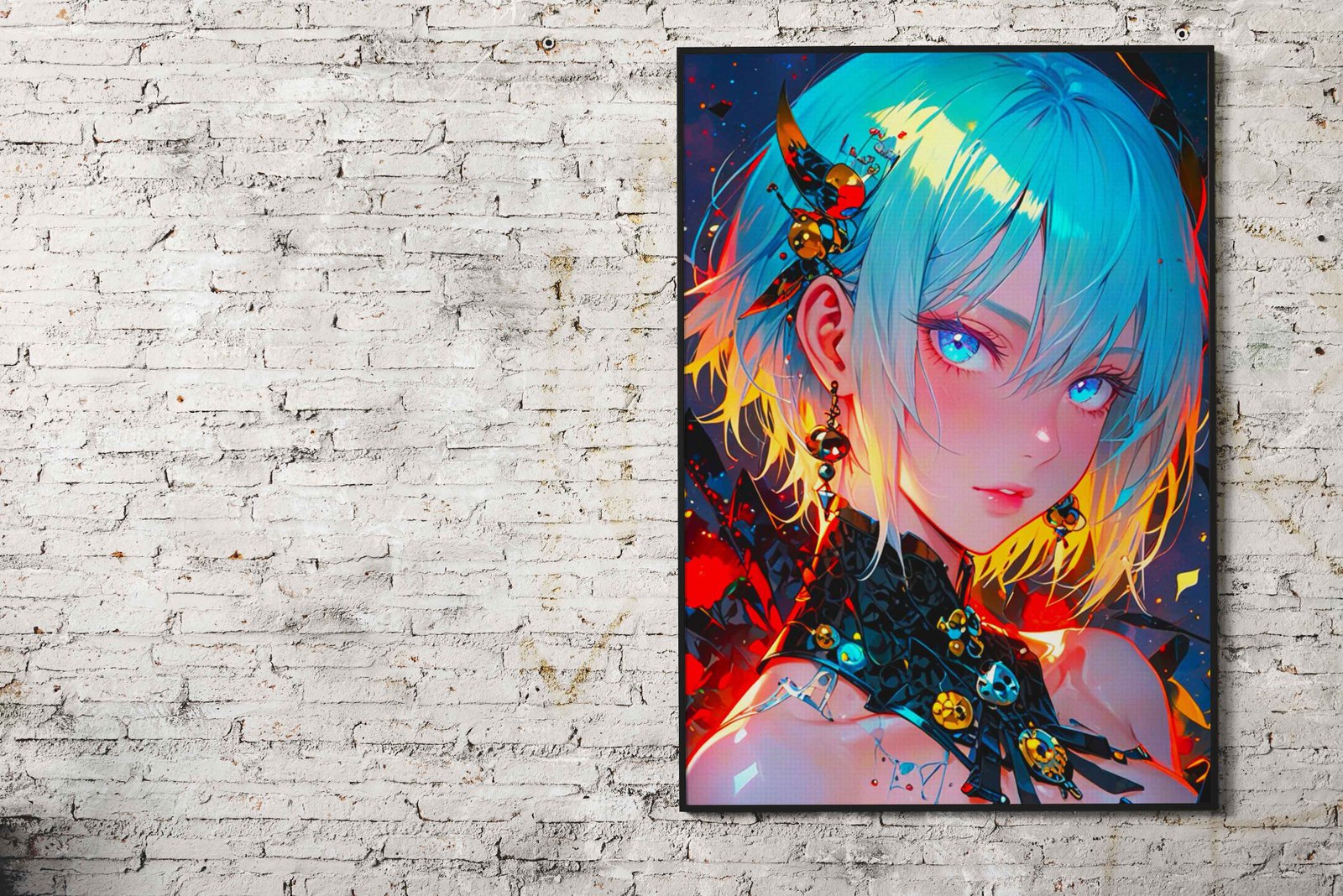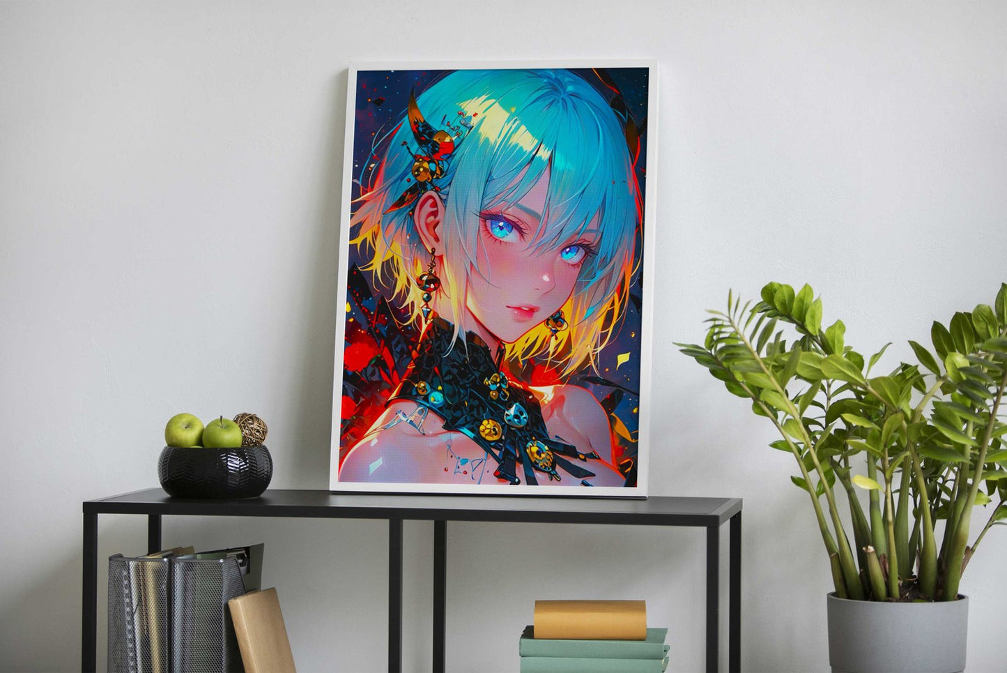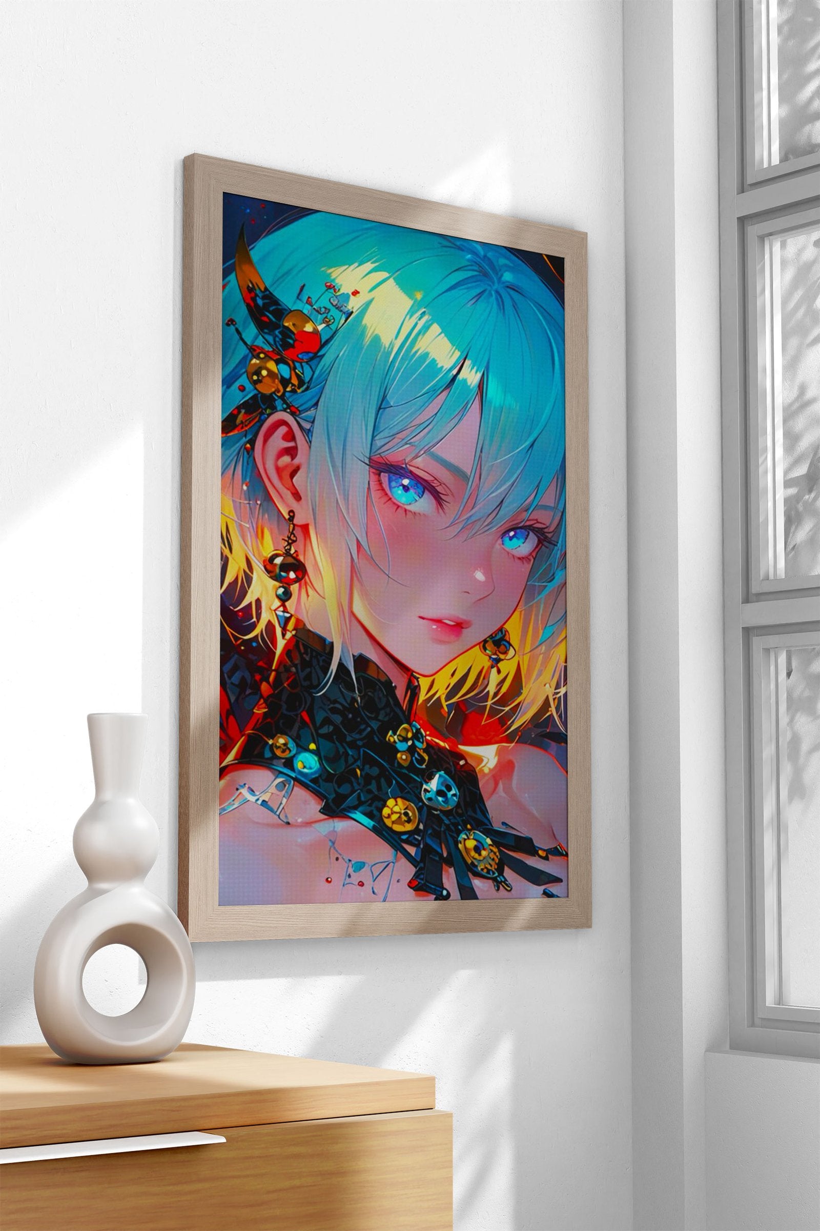 Anime Girl with Blue Hair Asian Style Poster | Wall Art for Home & Office | High-Quality Print