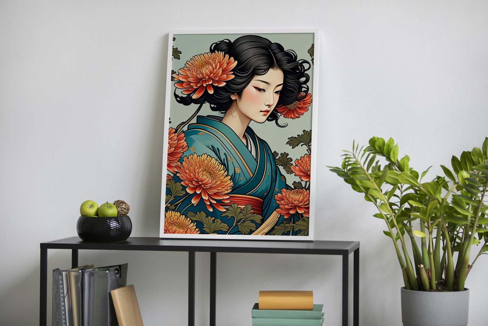 Asian Floral Girl Asian Style Poster | Wall Art for Home & Office | High-Quality Print