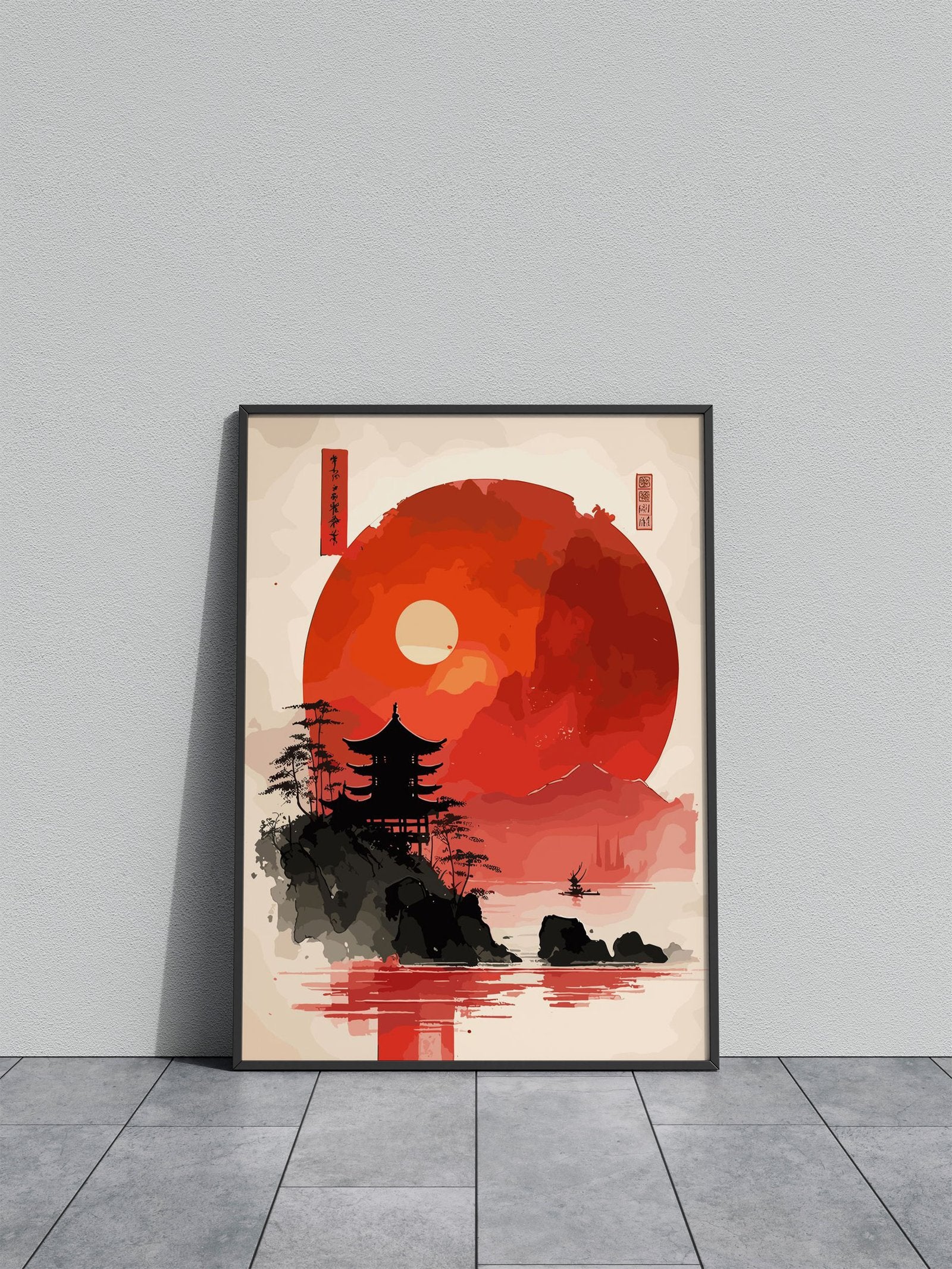 Asian Red Sunset Landscape Asian Style Poster | Wall Art for Home & Office | High-Quality Print