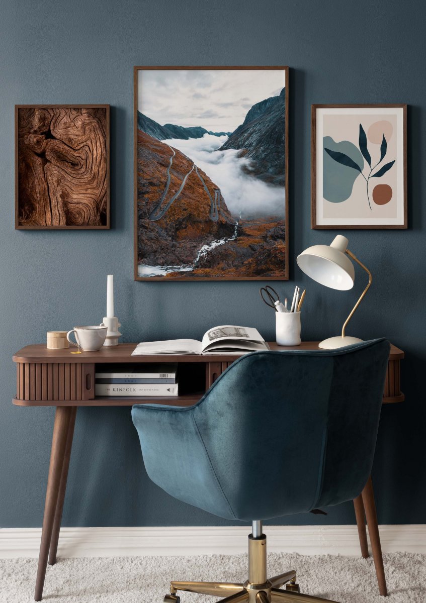 - Set of 3 posters: Old Wood Texture, Valley Fog, and Botanical Shapes No2