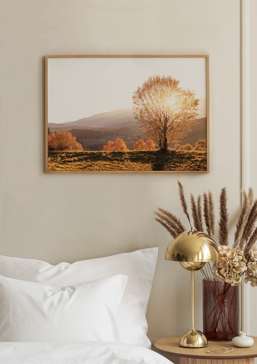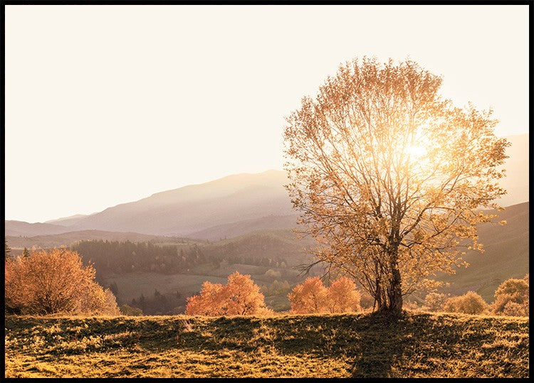 Capture the enchanting glow of a crisp autumn morning with our "Autumn Morning Poster Print." Featuring a serene fall landscape with a majestic tree bathed in soft sunlight, this print brings warmth and tranquility to any space. The golden hues of fall leaves are beautifully highlighted, making this poster a stunning addition to your decor.