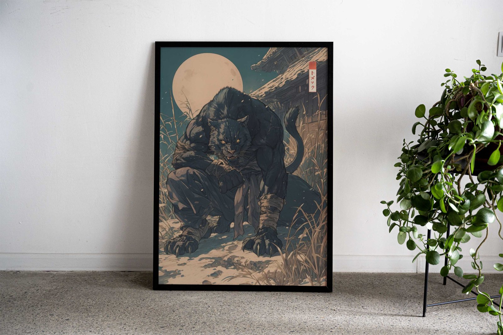 Back Panther Asian Style Poster | Wall Art for Home & Office | High-Quality Print