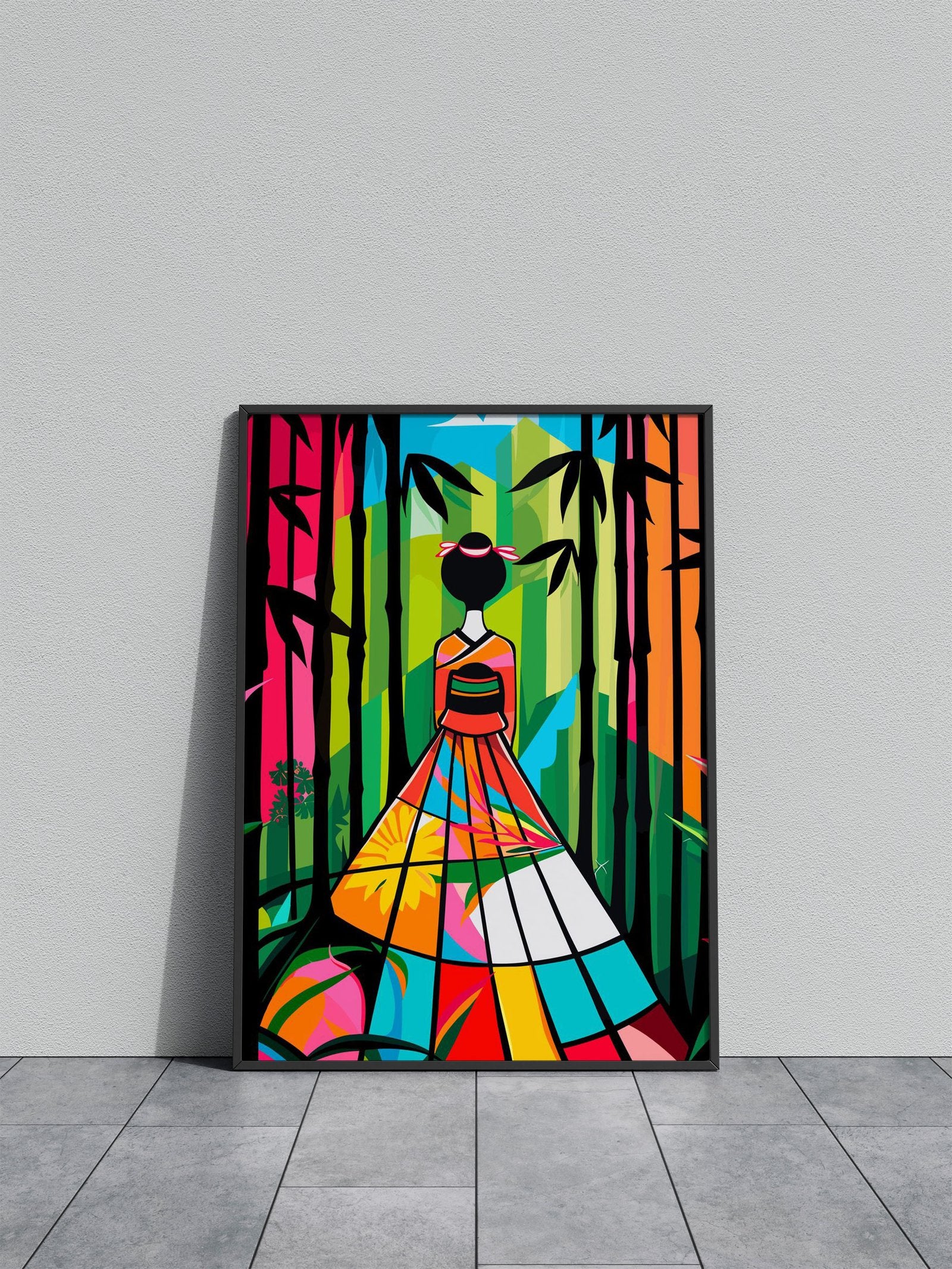 Bamboo Floral Kimono Asian Style Poster | Wall Art for Home & Office | High-Quality Print