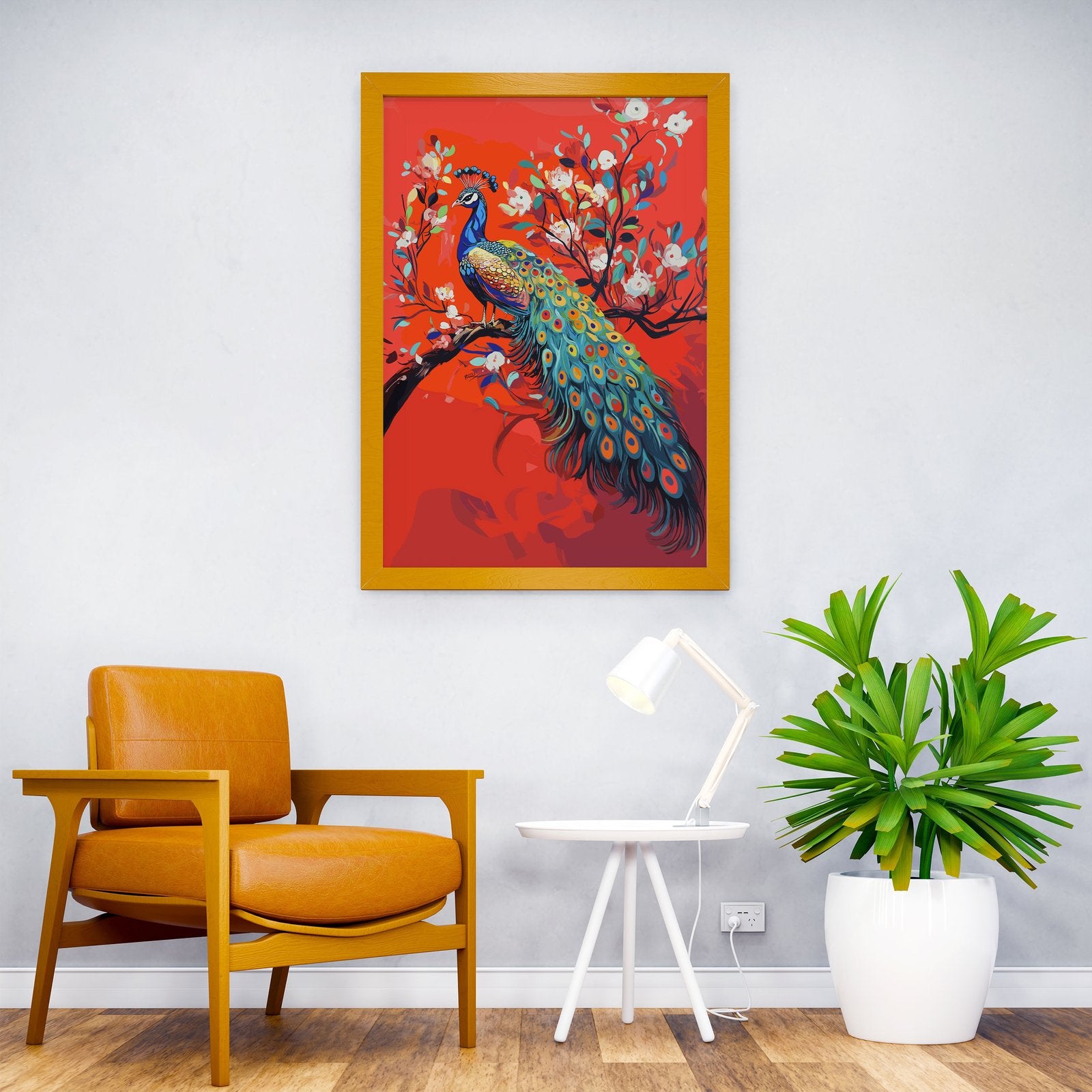 Beautiful Peacock on Branch Asian Style Poster | Wall Art for Home & Office | High-Quality Print