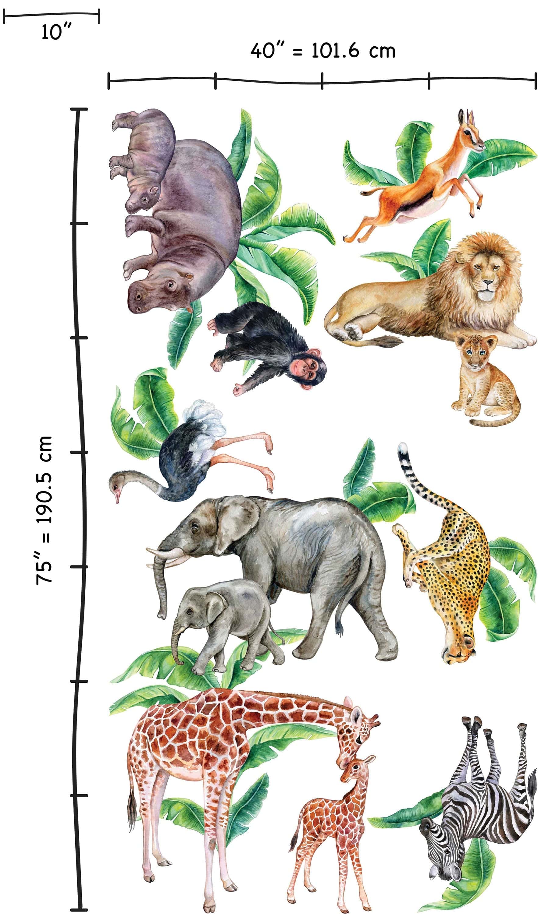Big Wallsticker Set for kids, safari animals, Wall Decal, Cub, Africa, Watercolor Decal Set, nursery, Peel and stick, Nursery wall sticker