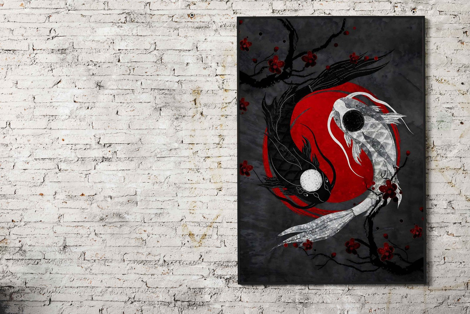 Black and White Japan Koi Asian Style Poster | Wall Art for Home & Office | High-Quality Print