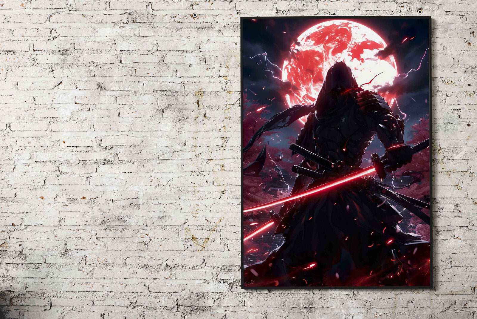 Black Bloodmoon Samurai Asian Style Poster | Wall Art for Home & Office | High-Quality Print