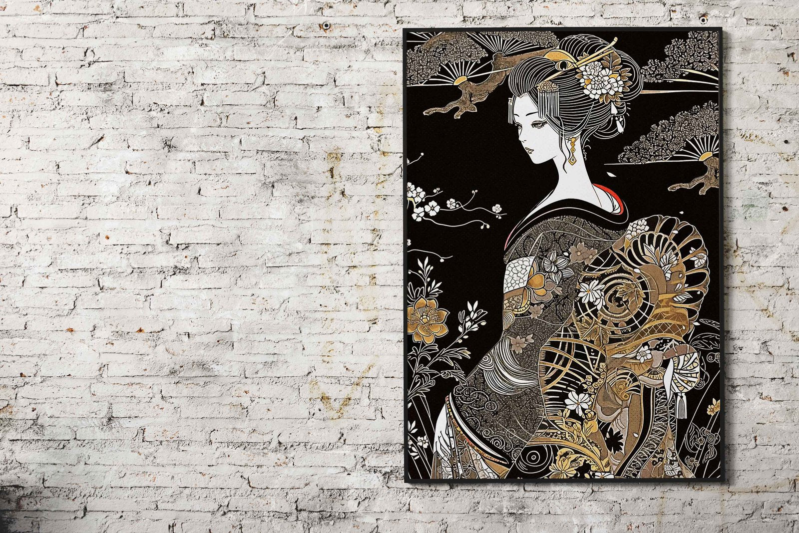 Black Geisha Asian Style Poster | Wall Art for Home & Office | High-Quality Print