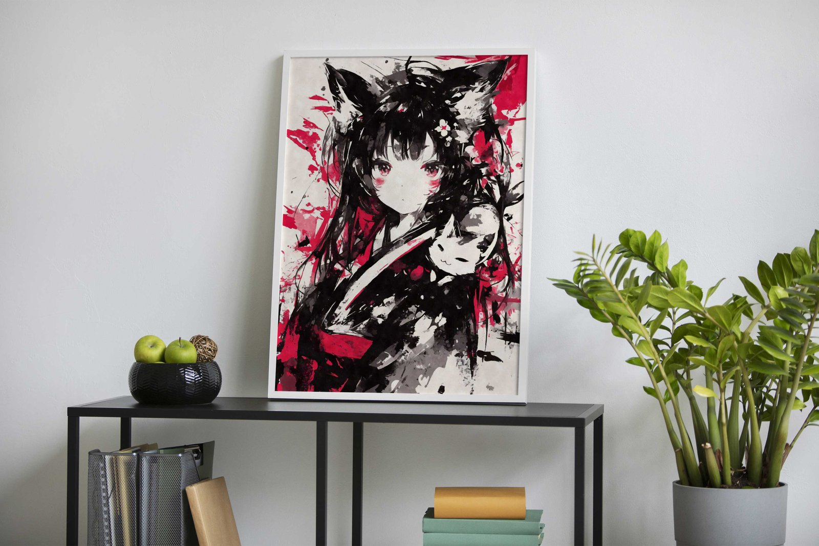 Black Ink Nekomimi Cat Asian Style Poster | Wall Art for Home & Office | High-Quality Print