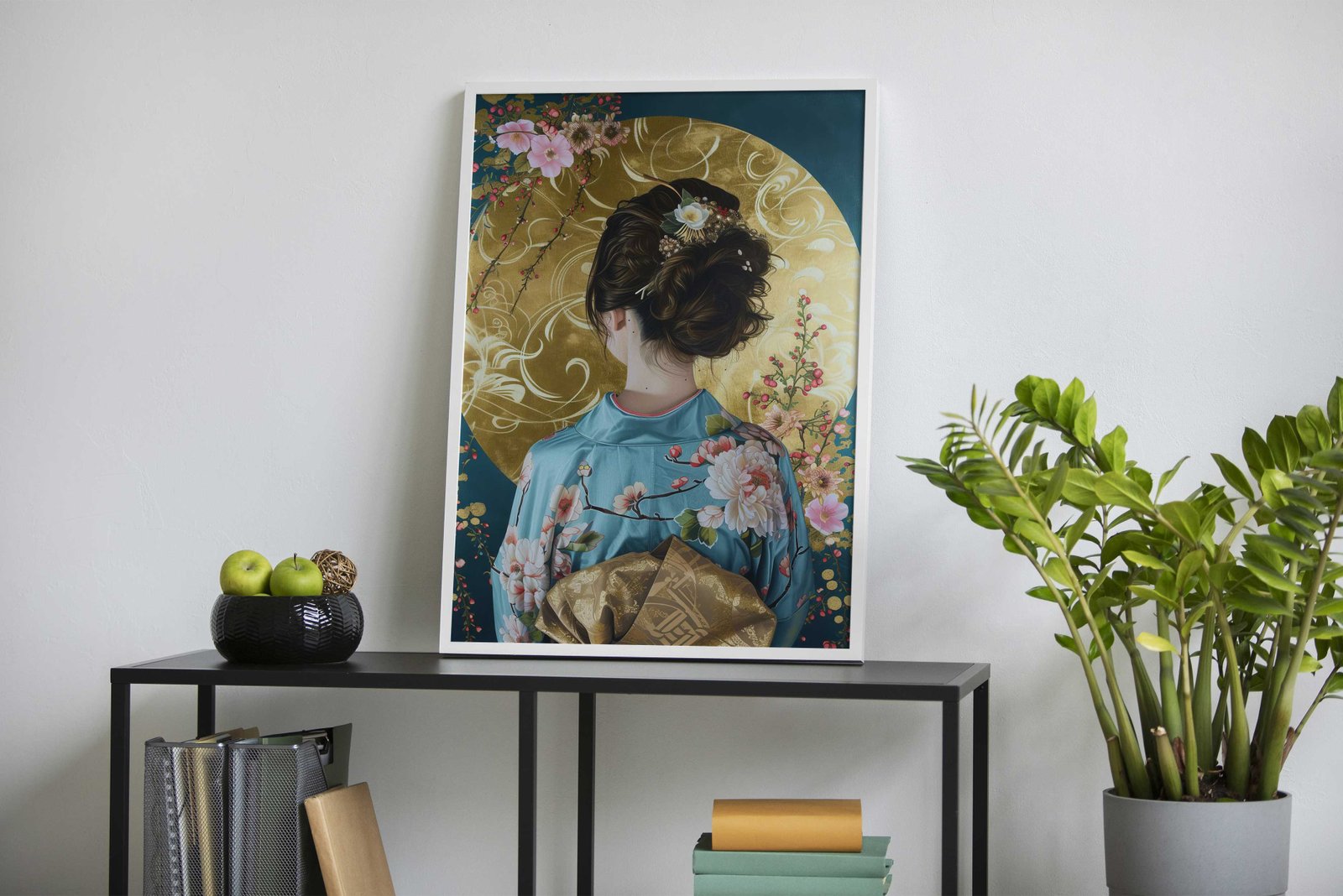 Blue Kimono Girl Japan Asian Style Poster | Wall Art for Home & Office | High-Quality Print