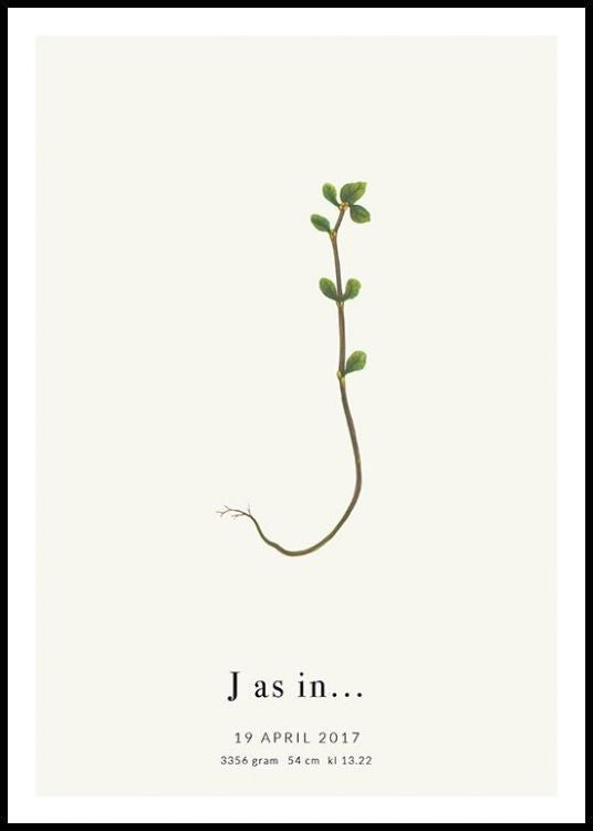 Printed to order on high-quality matte paper, the poster includes a crisp white border for a polished finish. Ideal for living rooms, bedrooms, offices, or nurseries, the Botanic Letter J Personal Poster adds a beautiful, nature-filled touch to your home.