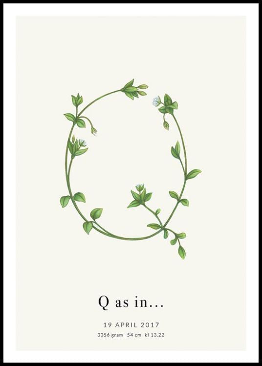 Infuse your surroundings with the natural beauty of this gorgeous botanical letter poster. Order your Botanic Letter "Q" Personal Poster today and bring a refreshing touch of nature into your home or workspace!