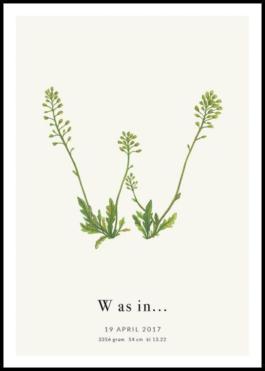Botanic Letter "W" Personal Poster - Customizable Nature-Inspired Art