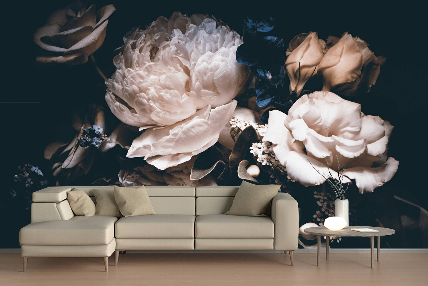 Bouquet of Peonies Removable Wallpaper, Peel and Stick, Floral Mural, Peonies Wallpaper, Dark Floral