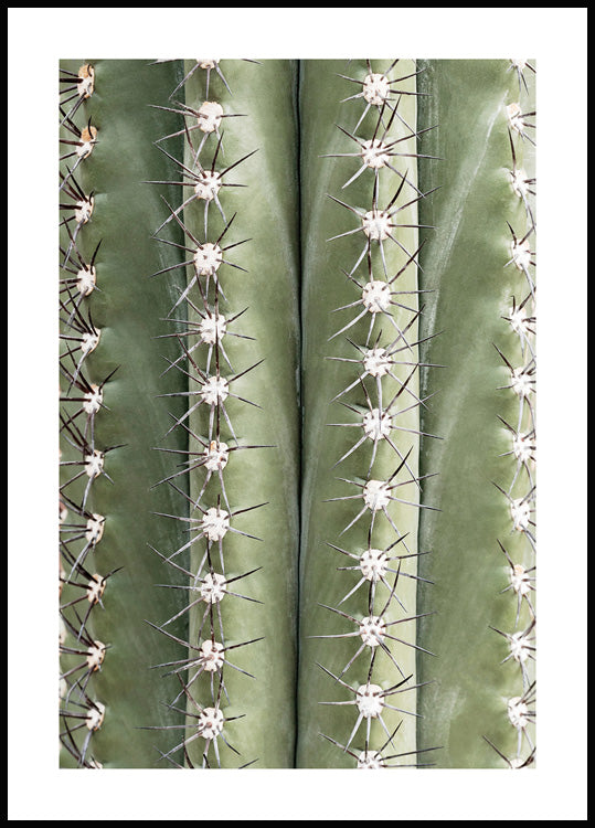 A trendy plant poster of a cactus (Echinopsis terscheckii) with sharp spines in close-up. The evergreen desert plant brings a breath of fresh air into your home with its green hue and is the trendy plant par excellence. Let this trendy botanical poster move into your home and create a stylish look! The poster has a printed white margin that frames the design.