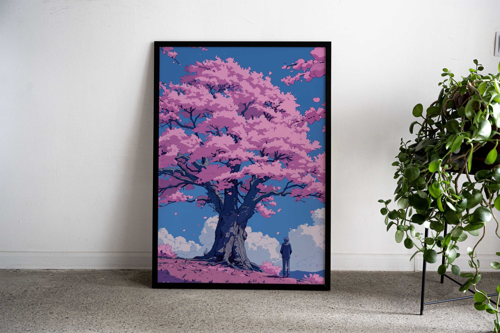 Cherry Blossom Pink Retro Asian Style Poster | Wall Art for Home & Office | High-Quality Print