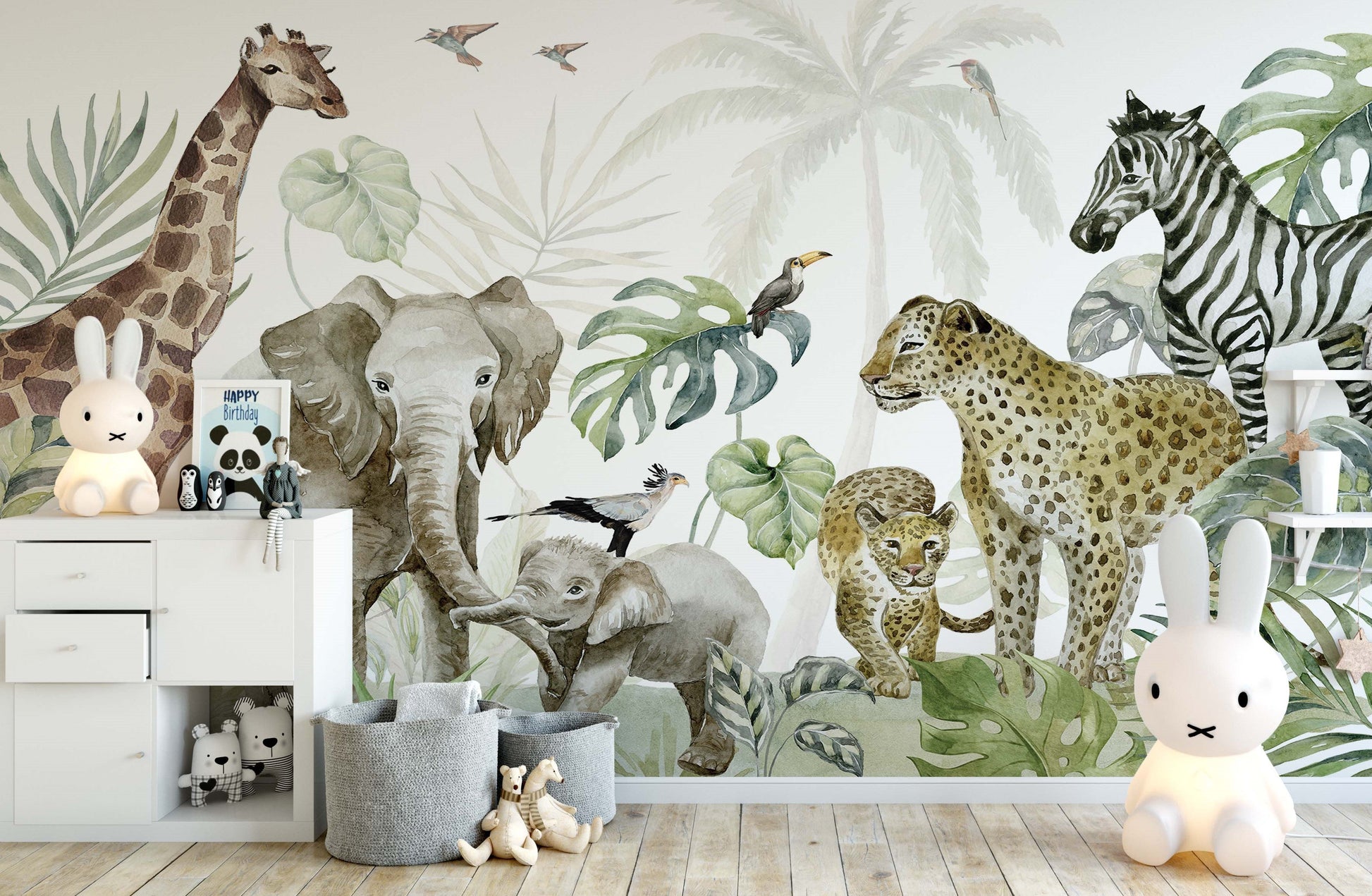 Introducing our stunning full wall mural, featuring a breathtaking depiction of the wildlife of the African jungle. This mural is sure to transport you to the heart of the savannah, with a stunning array of animals and flora.