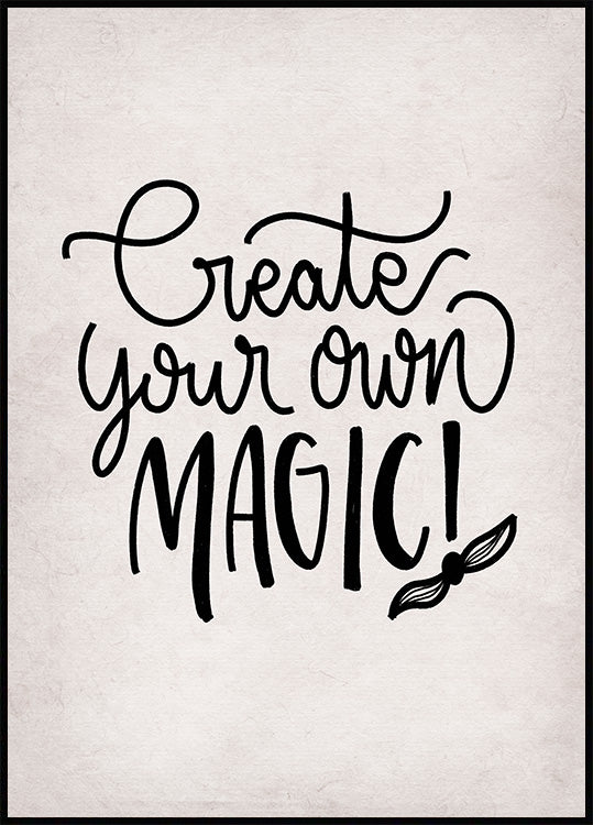 Quote print with the text "Create your own magic" in black on beige background. Combine this text print with magical forest and nature prints!