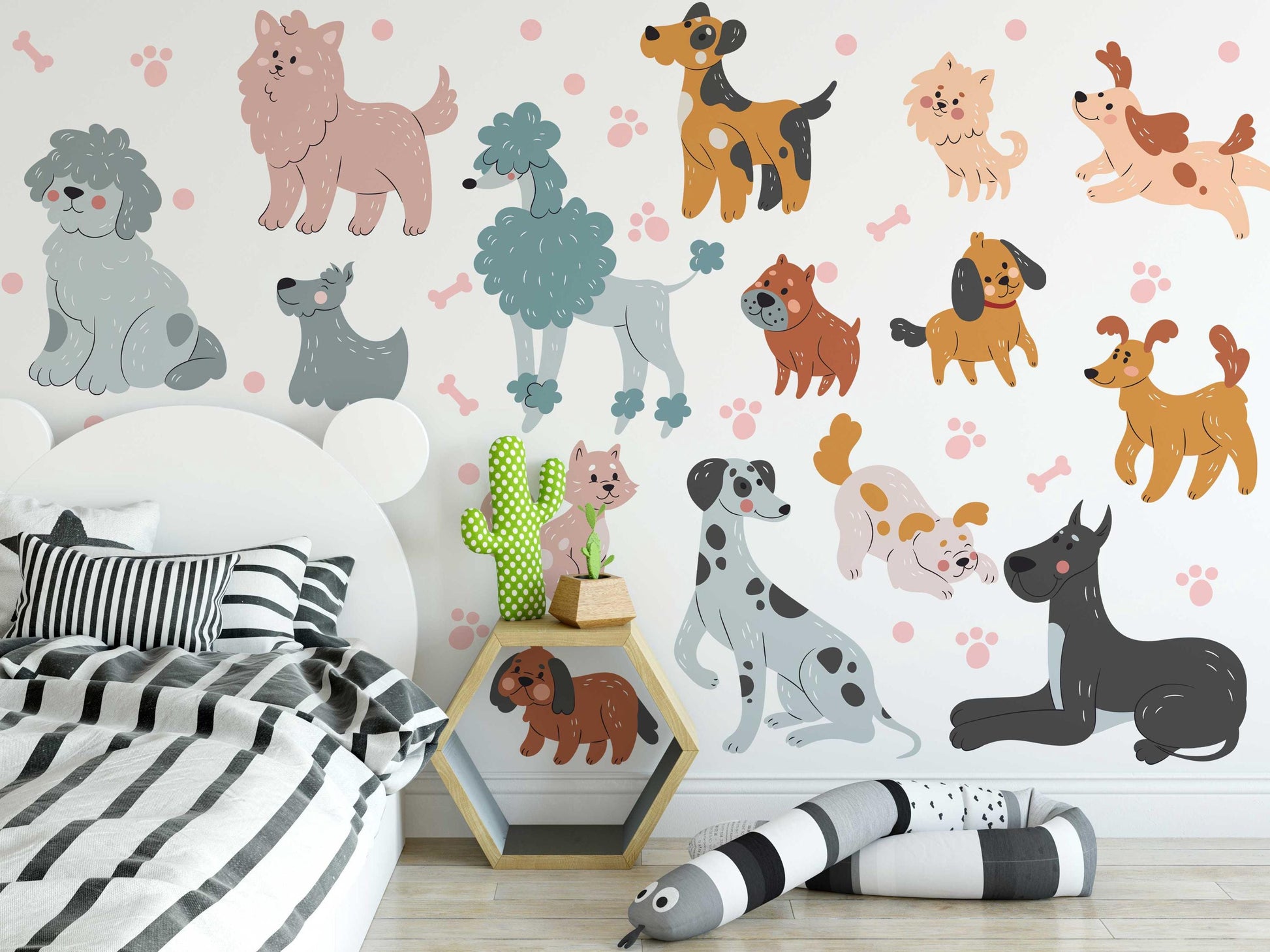 ◯ Whether you're creating a feature wall or adding a touch of whimsy around the room, our Dogs Wall Decals Set is perfect for little ones who love animals!