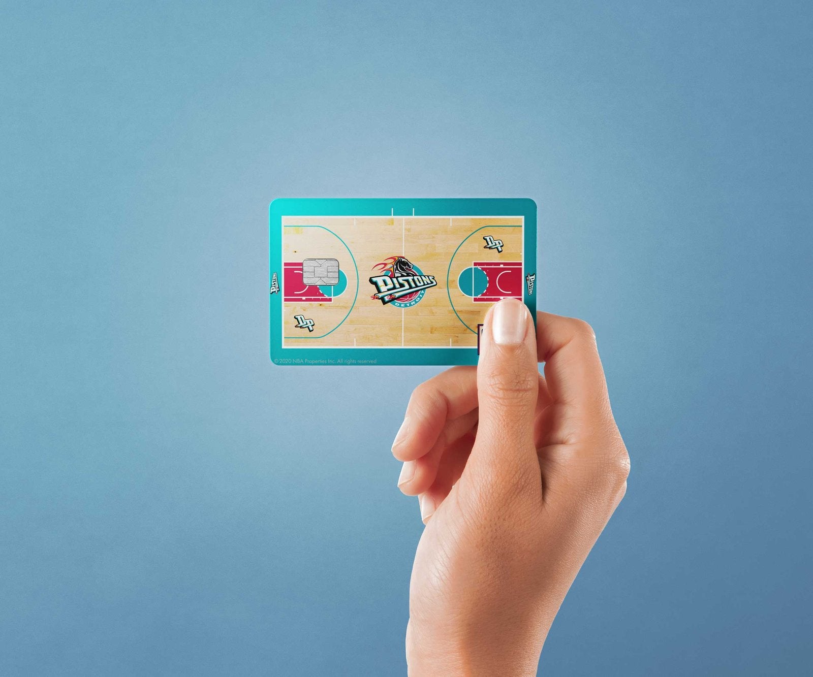 Detroit Pistons Retro Courtside Hardwood Classics Design | Credit Card Sticker | Small Chip | Credit Card Skin