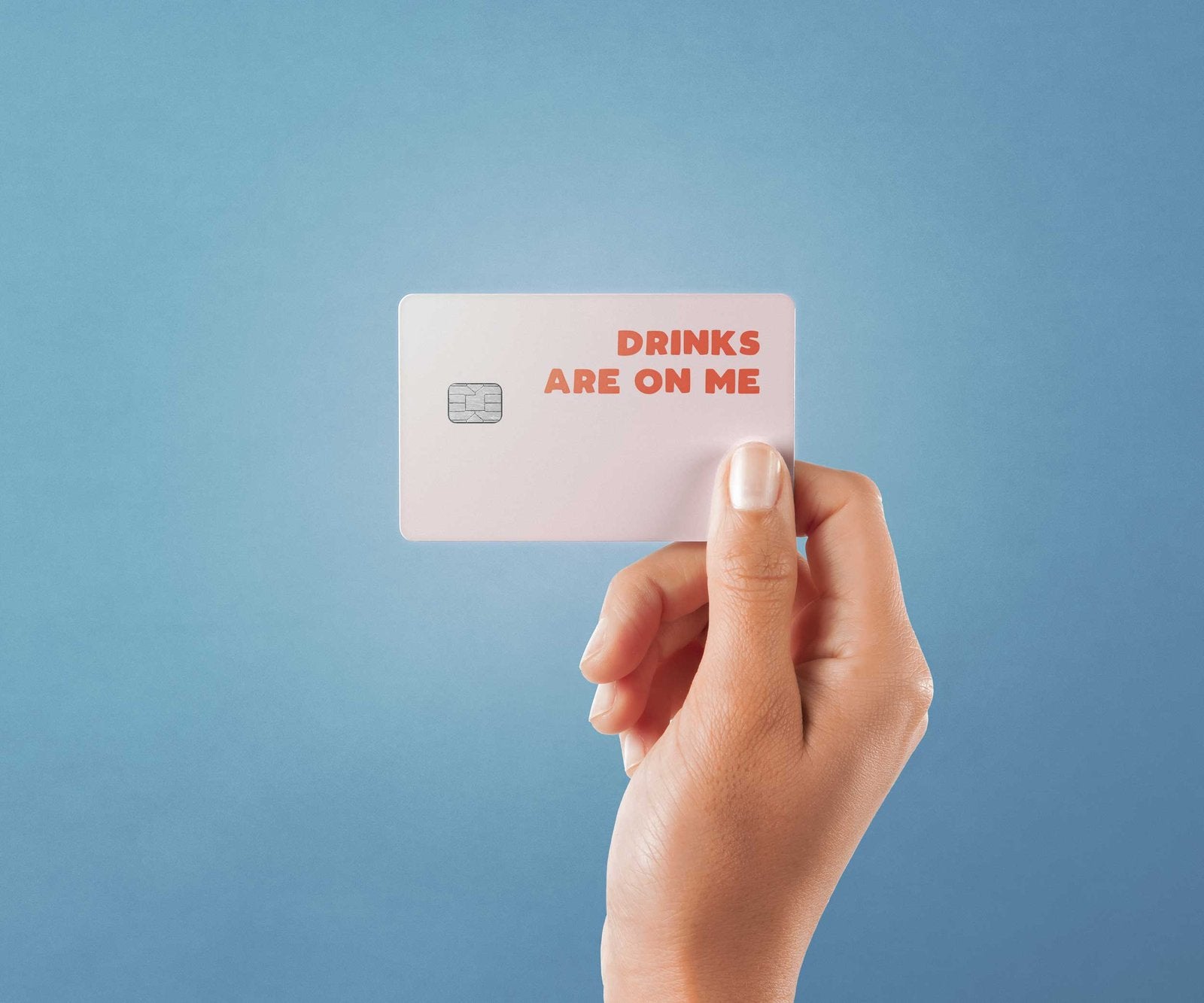 Drinks on Me Design | Credit Card Sticker | Small Chip | Credit Card Skin
