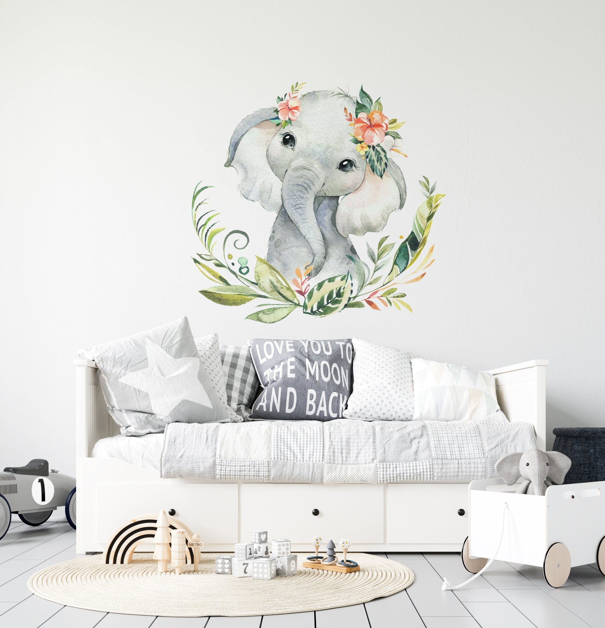 Very Cute Elephant surrounded by flowers is perfect combination to add more colour to your child' nursery or bedroom.