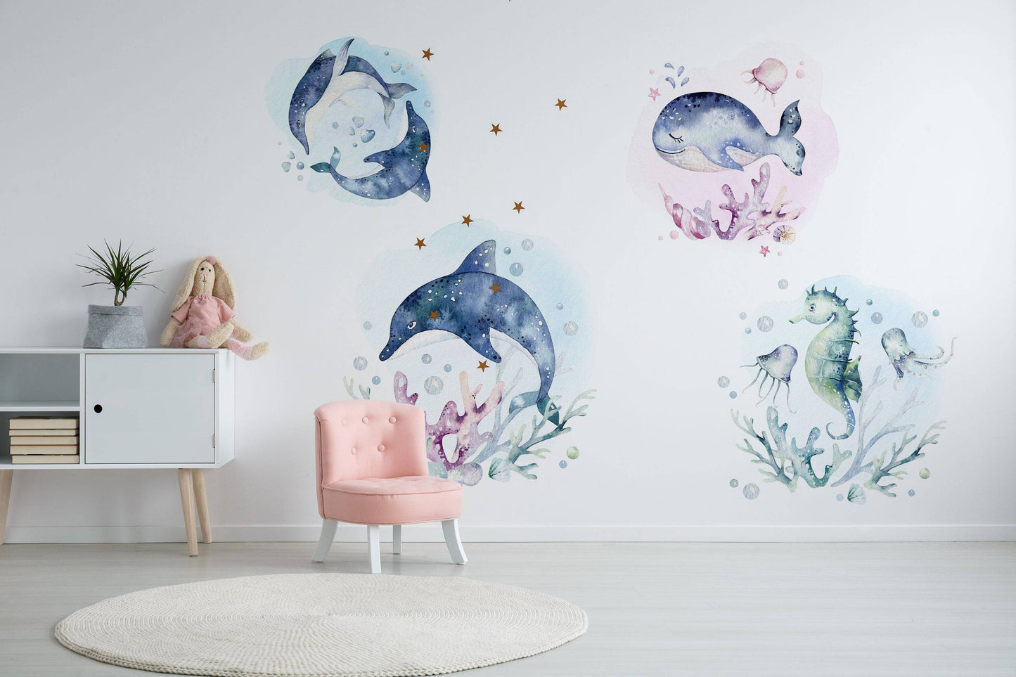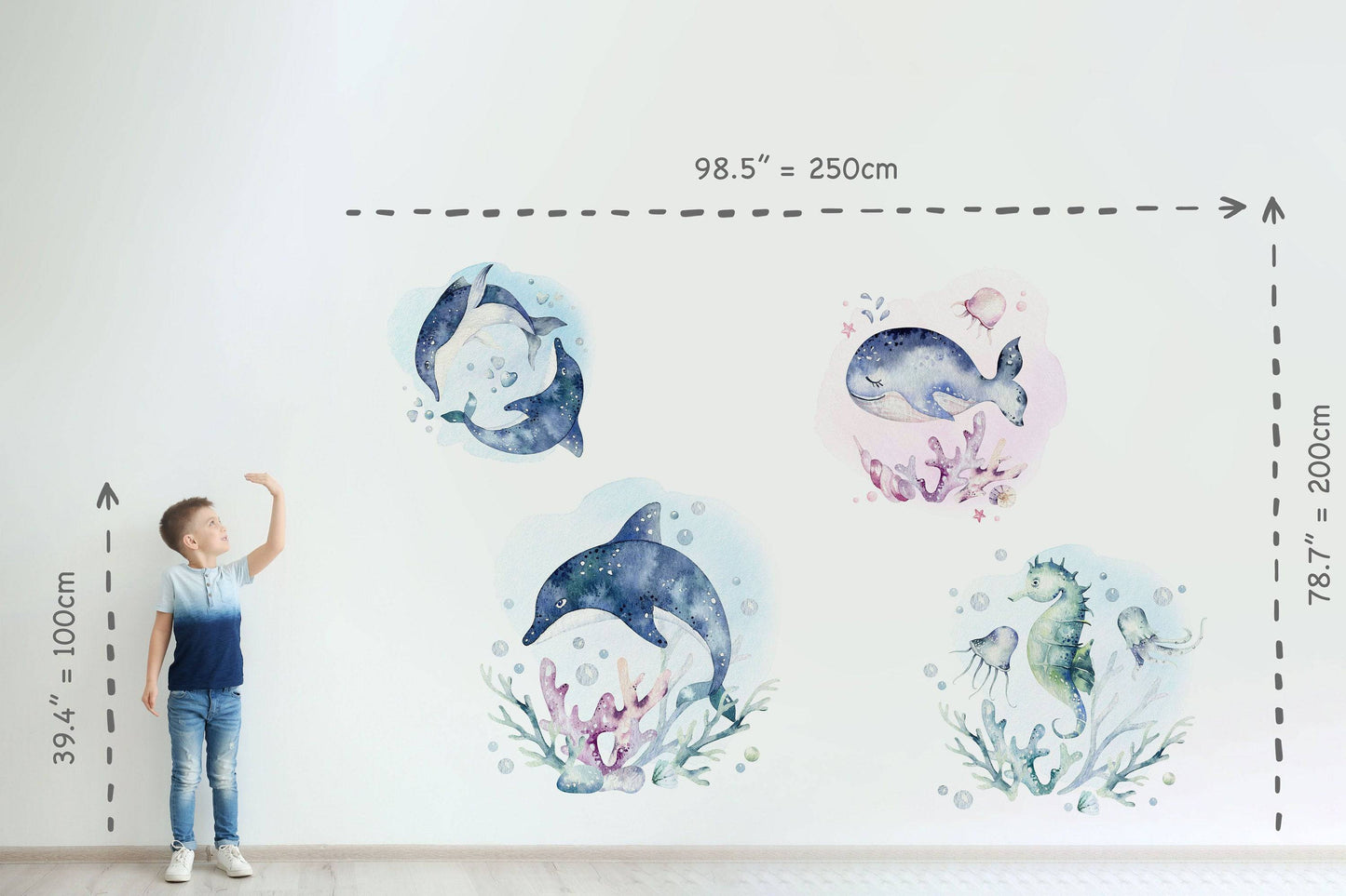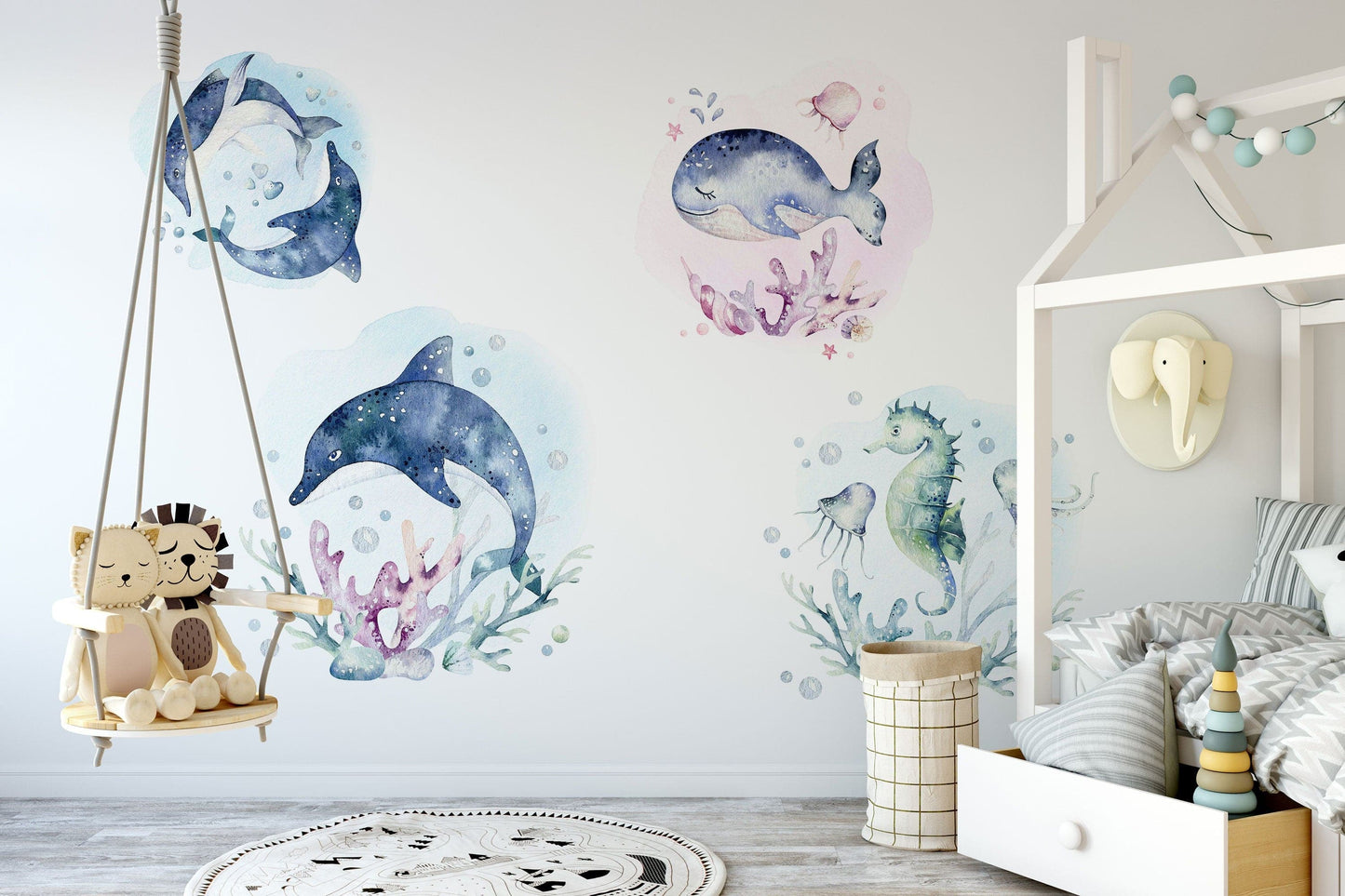Fabric Wall Decal, FRIENDS of the SEA, Nursery wall decal, Whale wall decal, Marine nursery decal, Sea wall decal, Under the sea wall decal