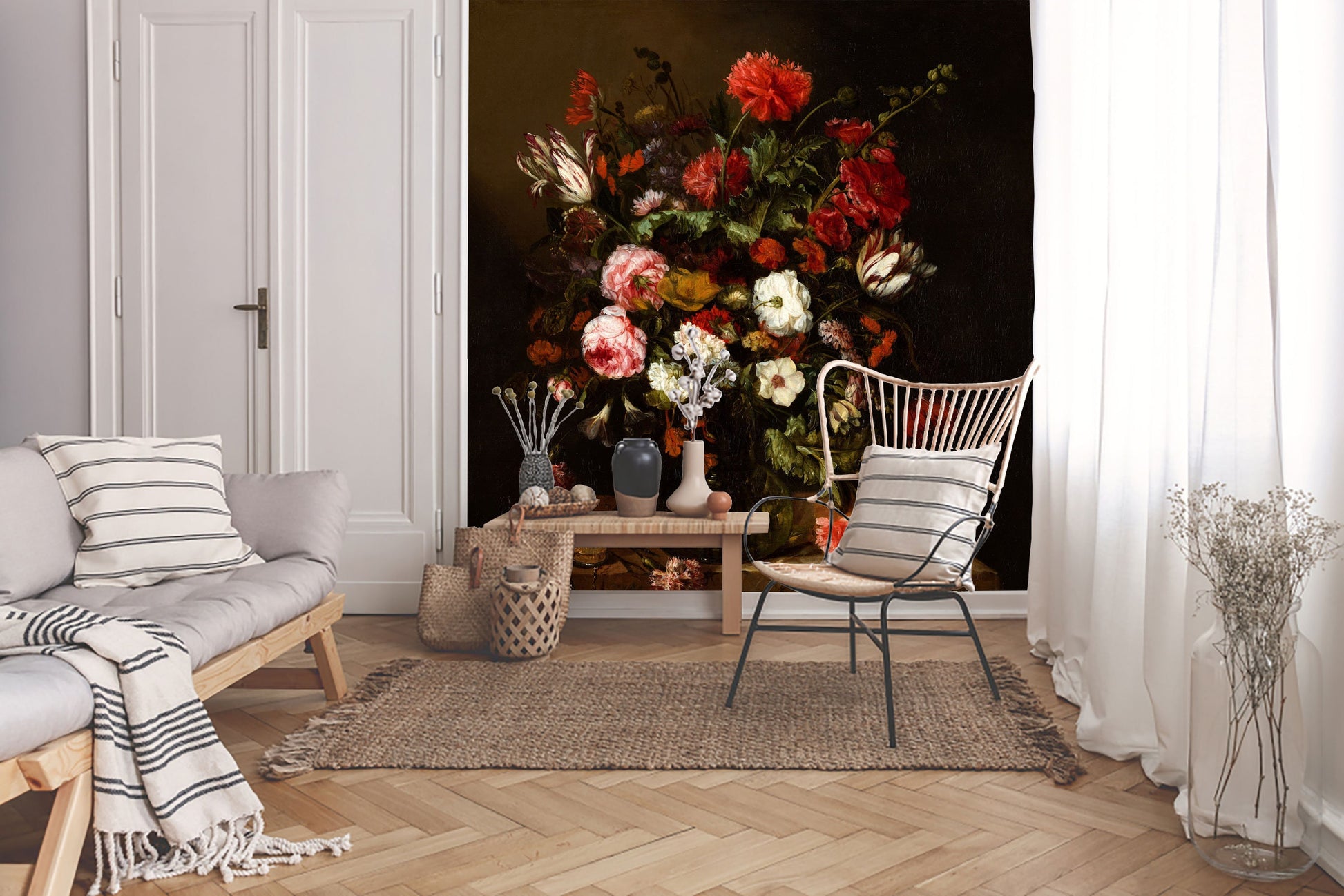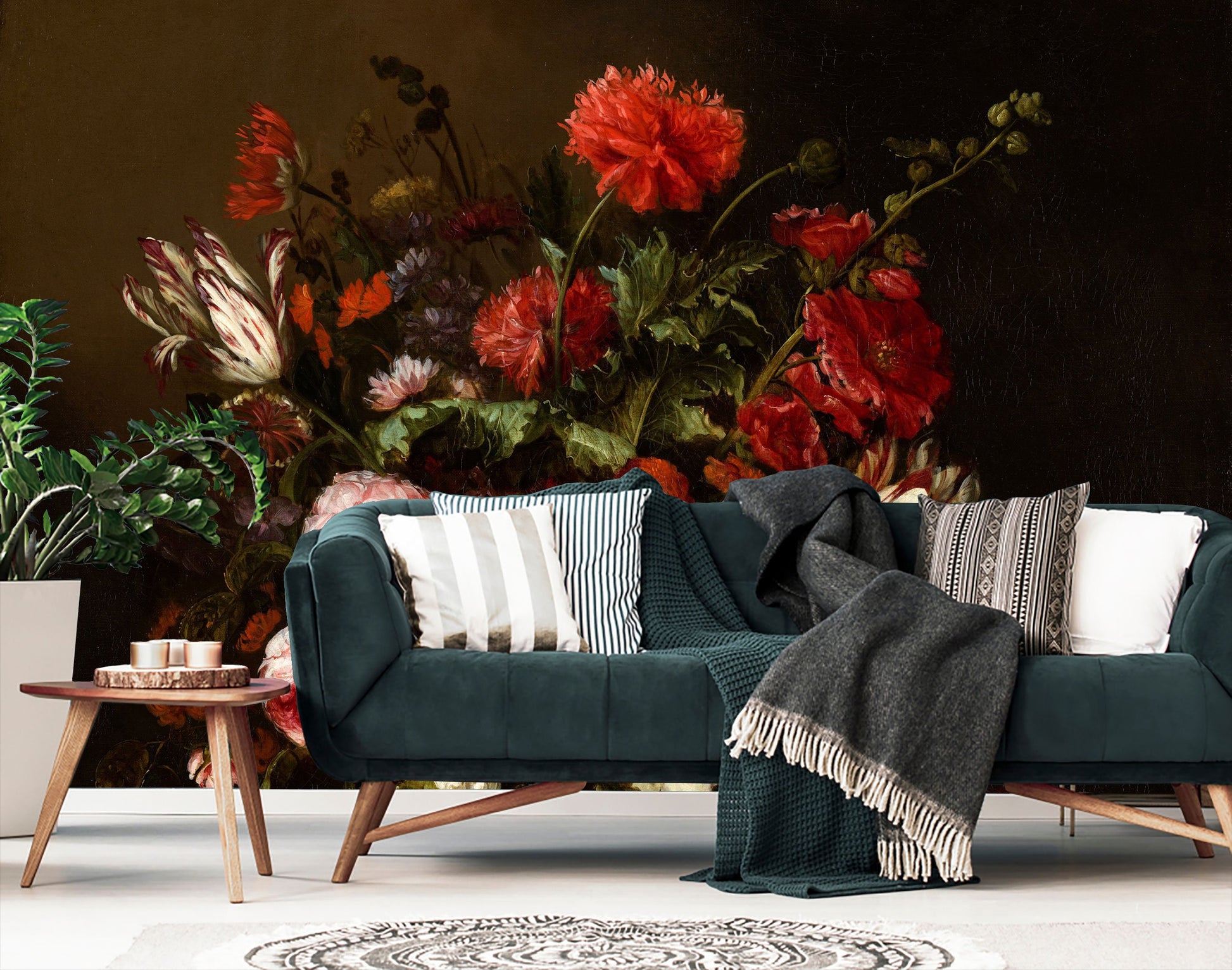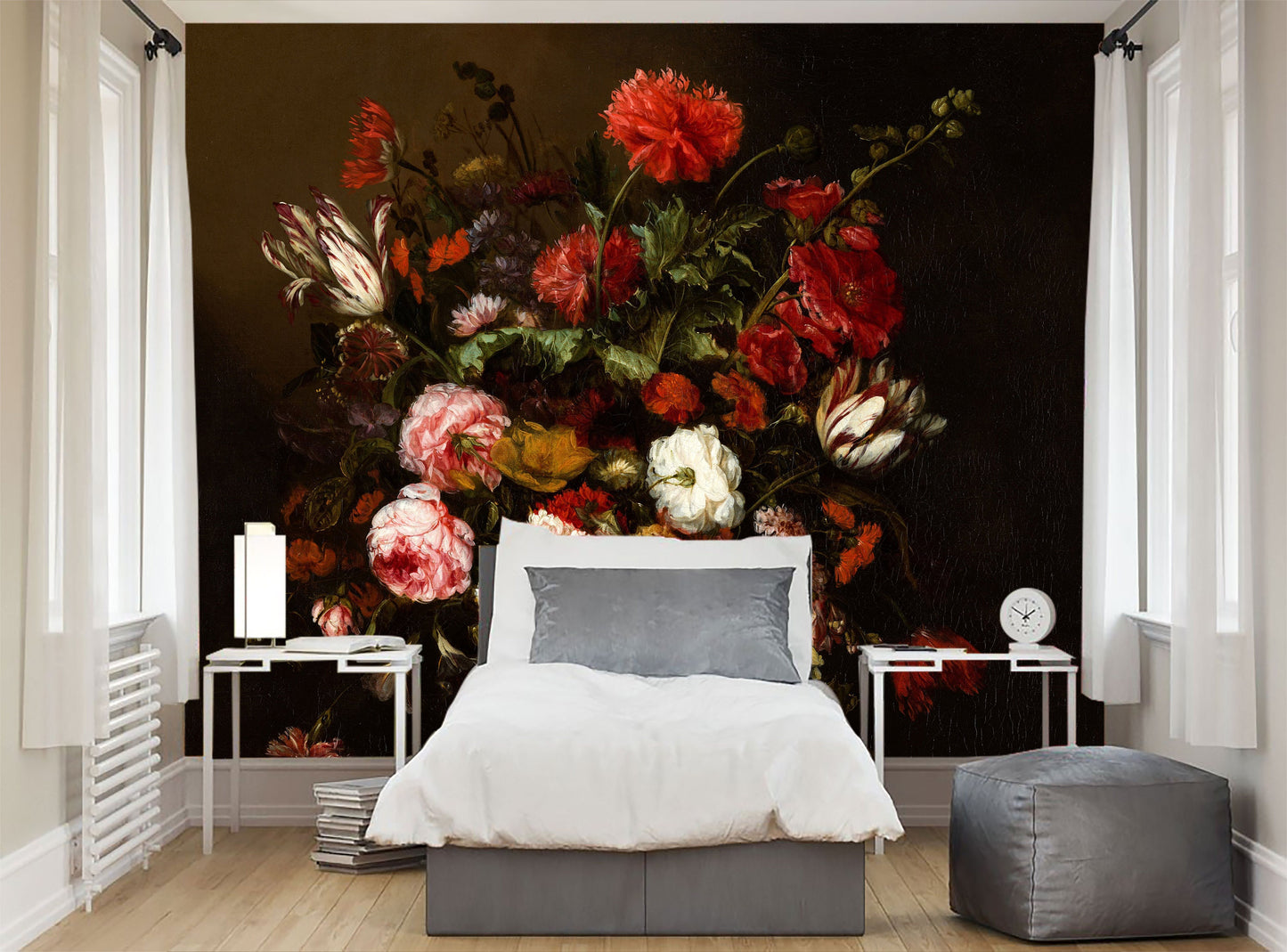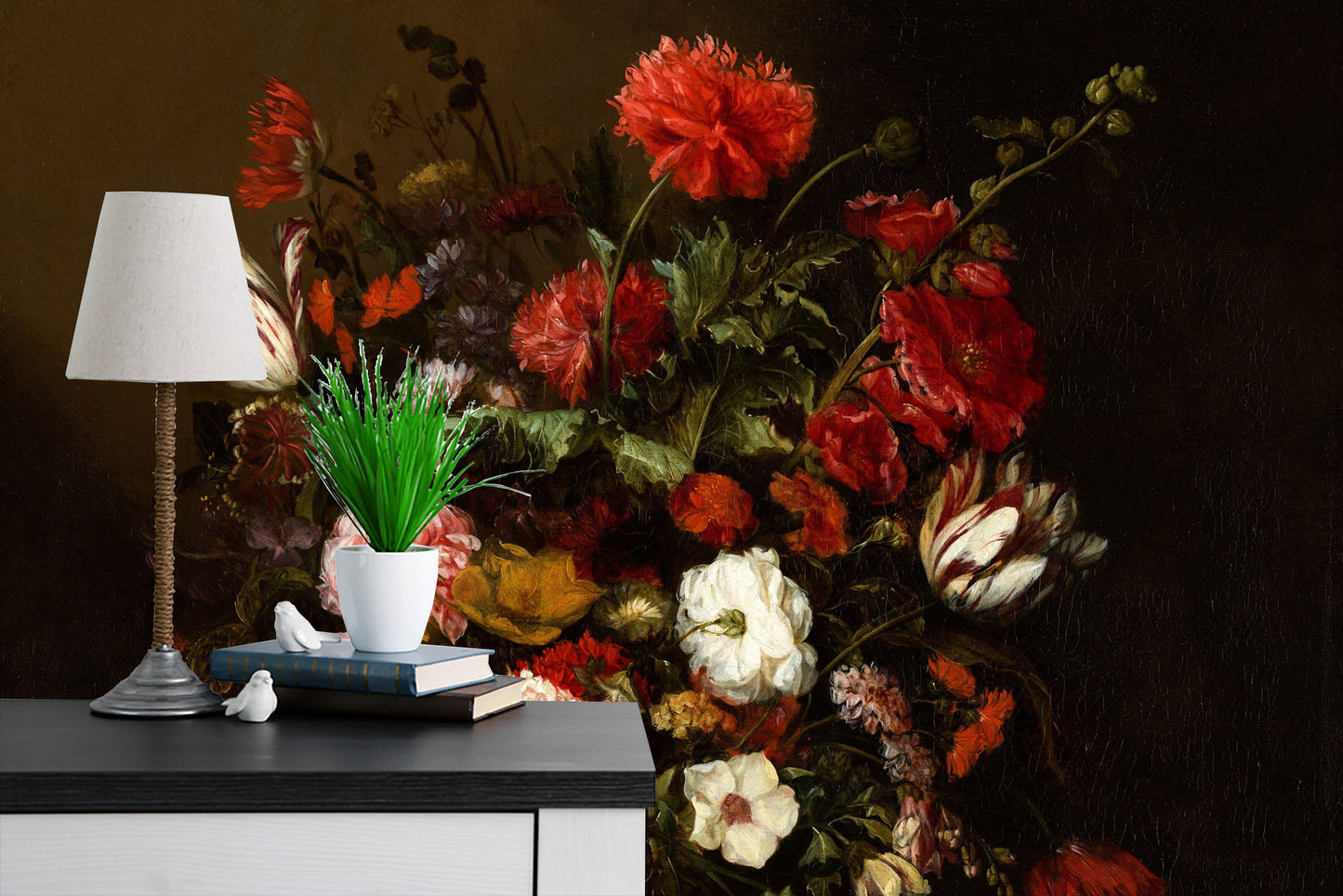 Flower Still Life by Beijeren Wallpaper, Dark floral peel and stick wallpaper, Oil painting, Wall mural, Dark flowers, Dark wall mural