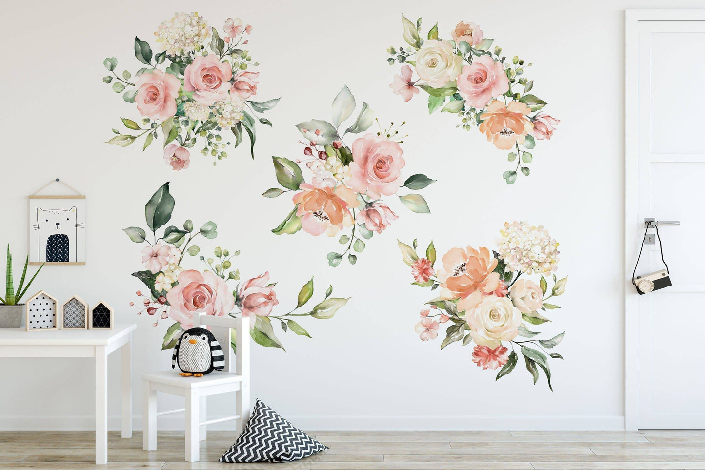 Flower wall decal, Floral Wall Decals, Flower Wall Stickers, Peony Flowers Wall Decal, Peony Decal Peel & Stick, Peonies Wall Decals Decor