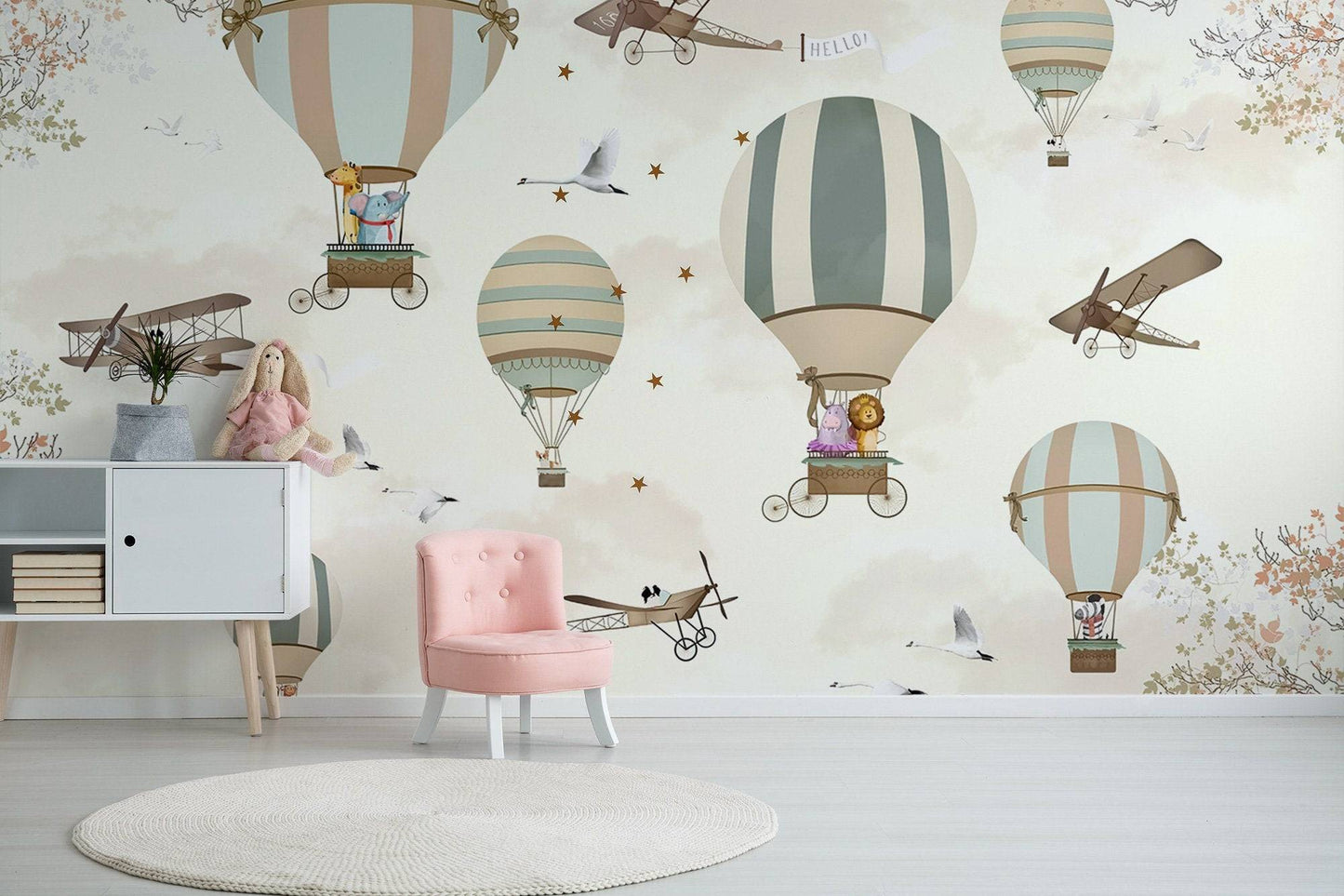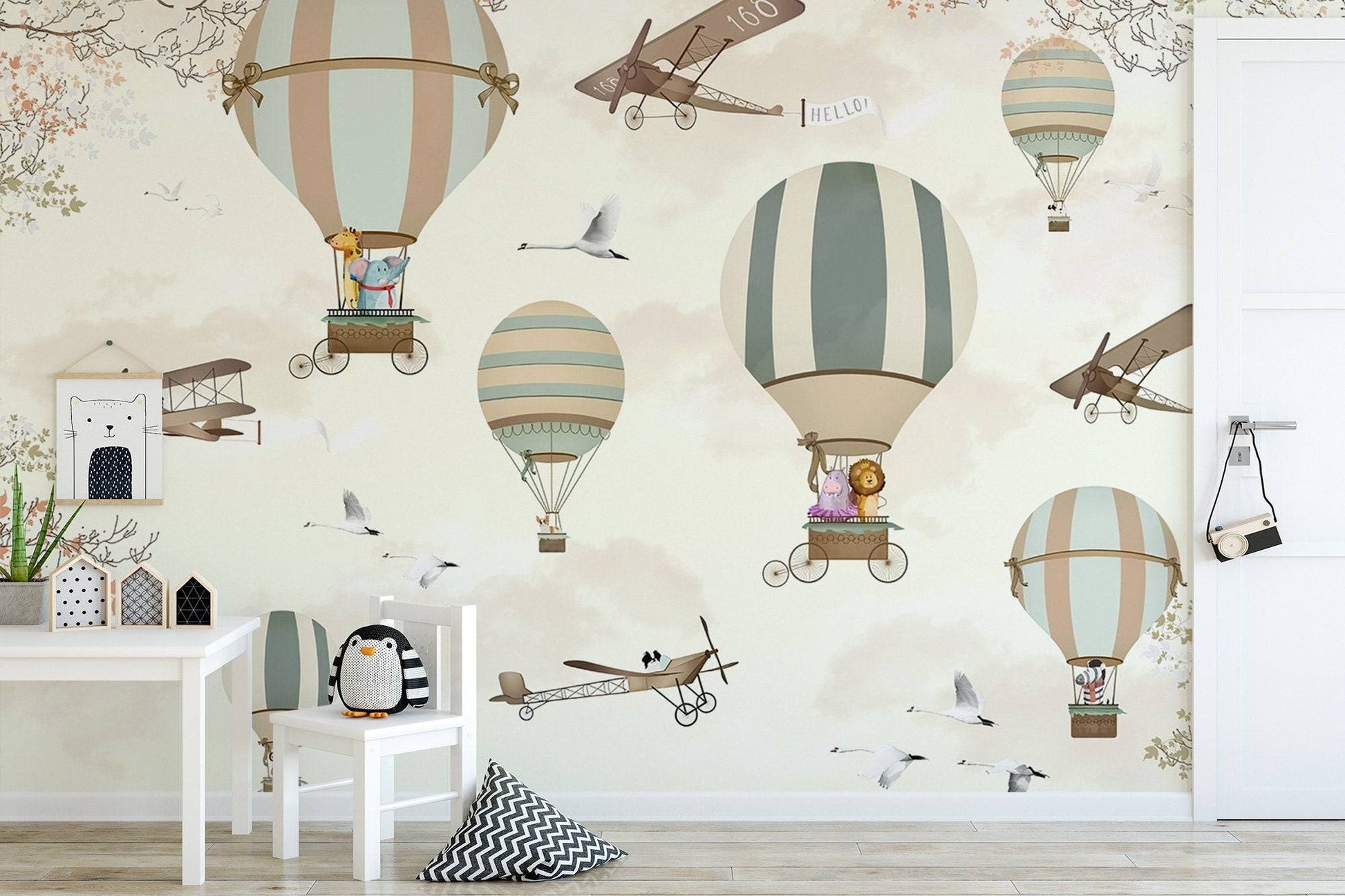 Flying Hot Air Balloons Wallpaper, Wall Mural, Peel and Stick, Self Adhesive, Wall Covering by Bella Stampa Studio