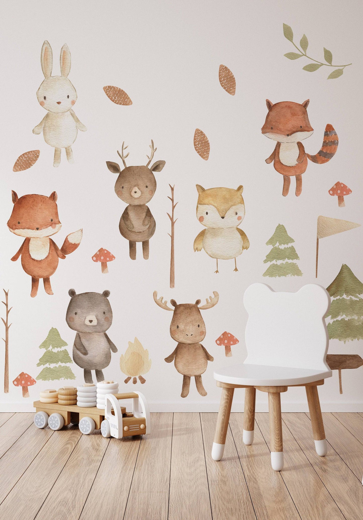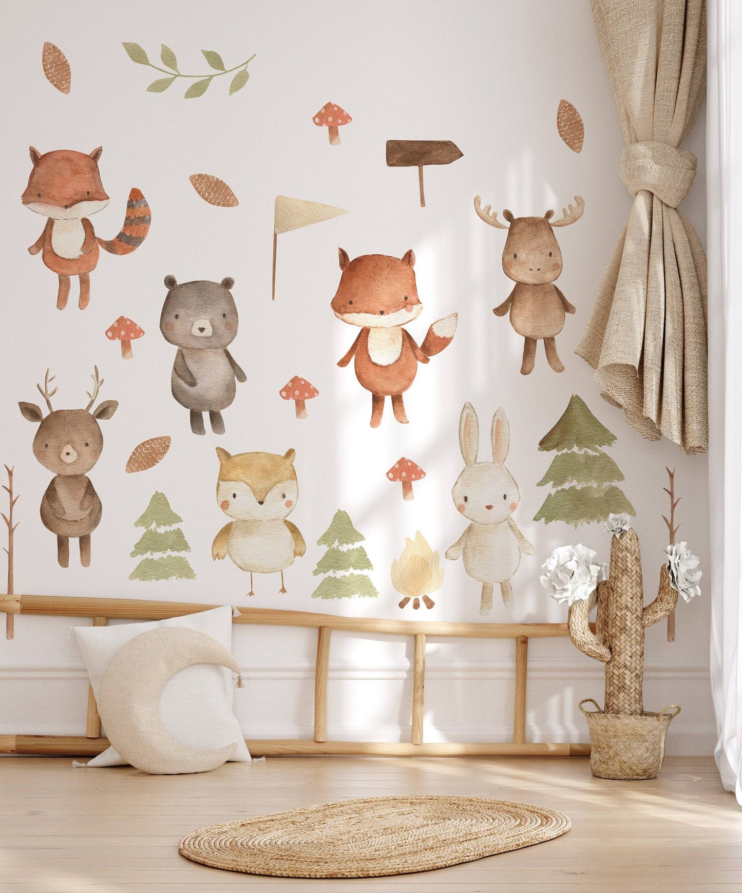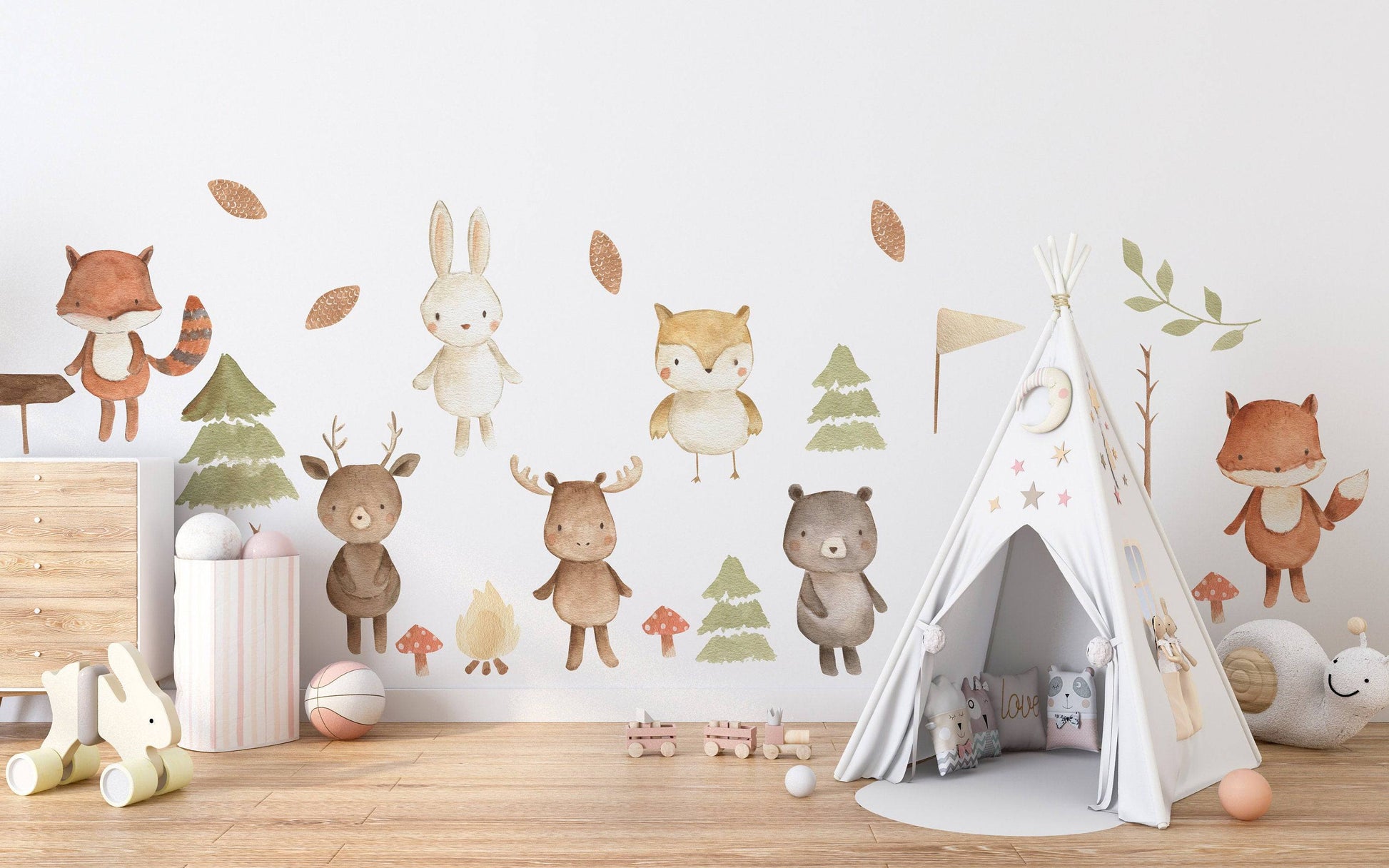 Forest Animals Nursery Wall Decal | Woodland Nursery Decal | Watercolor Bear, Deer, Owl, Fox, Rabbit Stickers | Peel and Stick Wall Decal