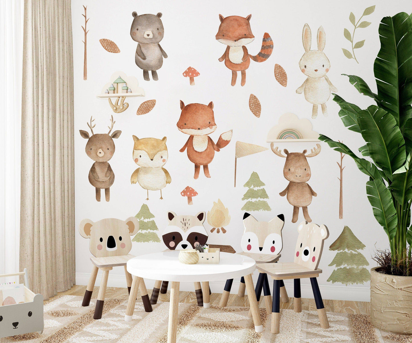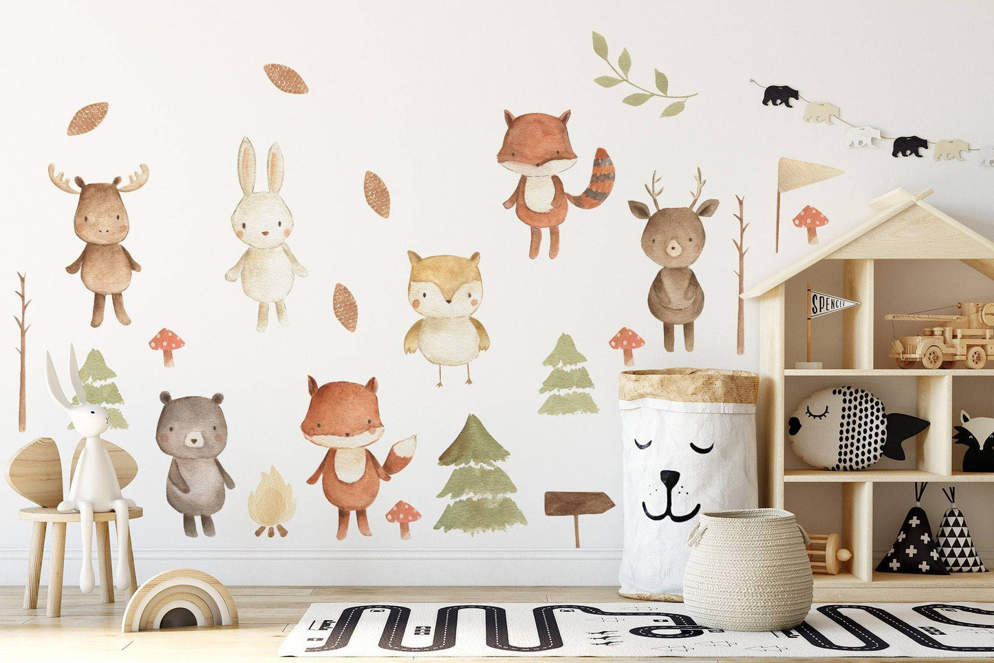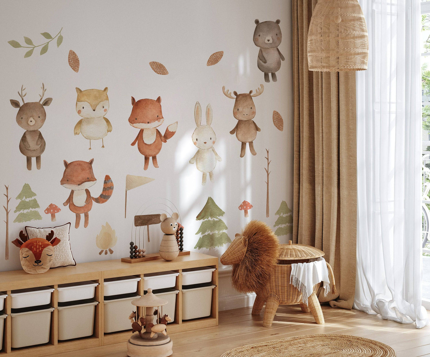 Forest Animals Nursery Wall Decal | Woodland Nursery Decal | Watercolor Bear, Deer, Owl, Fox, Rabbit Stickers | Peel and Stick Wall Decal