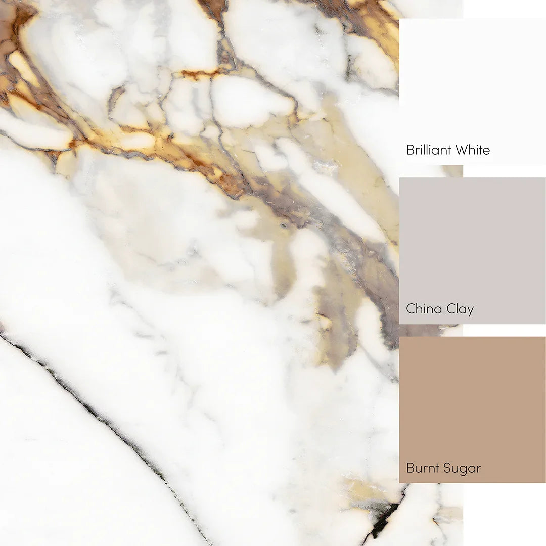 Featuring deep-cut swathes of opulent detail, this luxurious marble wall mural radiates elegance and sophistication. Set on a crisp white pearlescent surface, a stunning combination of smokey grey, gold, and burnt orange marble pools trickle throughout, creating a captivating visual experience.