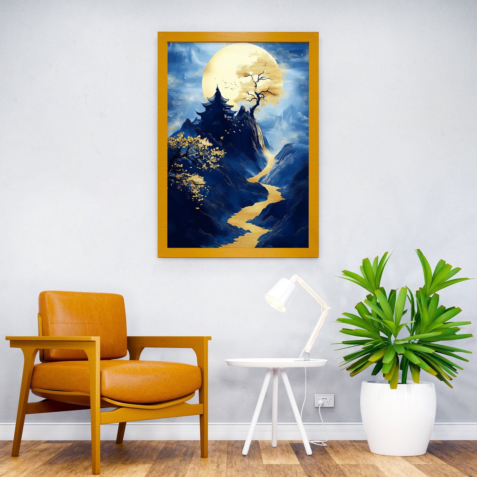 Golden River in Blue Mount Asian Style Poster | Wall Art for Home & Office | High-Quality Print